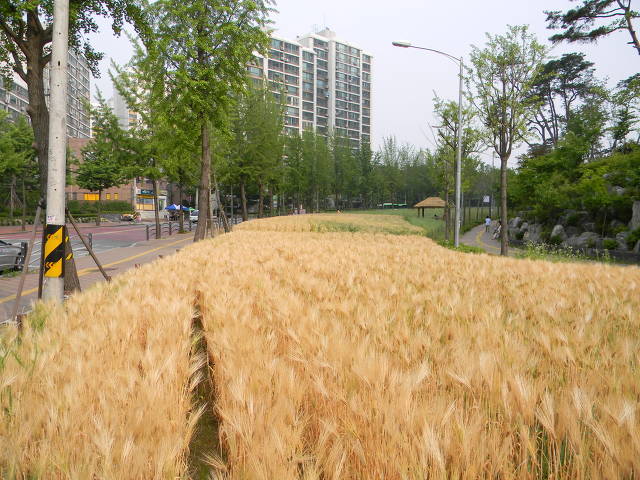 ▲ 암사정수센터교차로의 전설, 보리밭의 황금 물결 (2012년) |