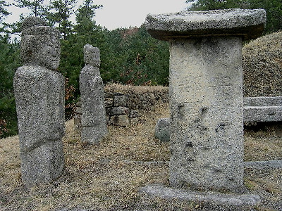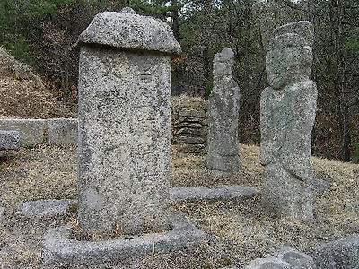 이 곳은 성석린선생 부친 묘로 묘역 조성이 더 오래되어서 앞의 문인석은 모습이 조금 다르고 뒤에 있는 문인석은 고려시대의 투박한 인석 모습을 하고 있습니다. |