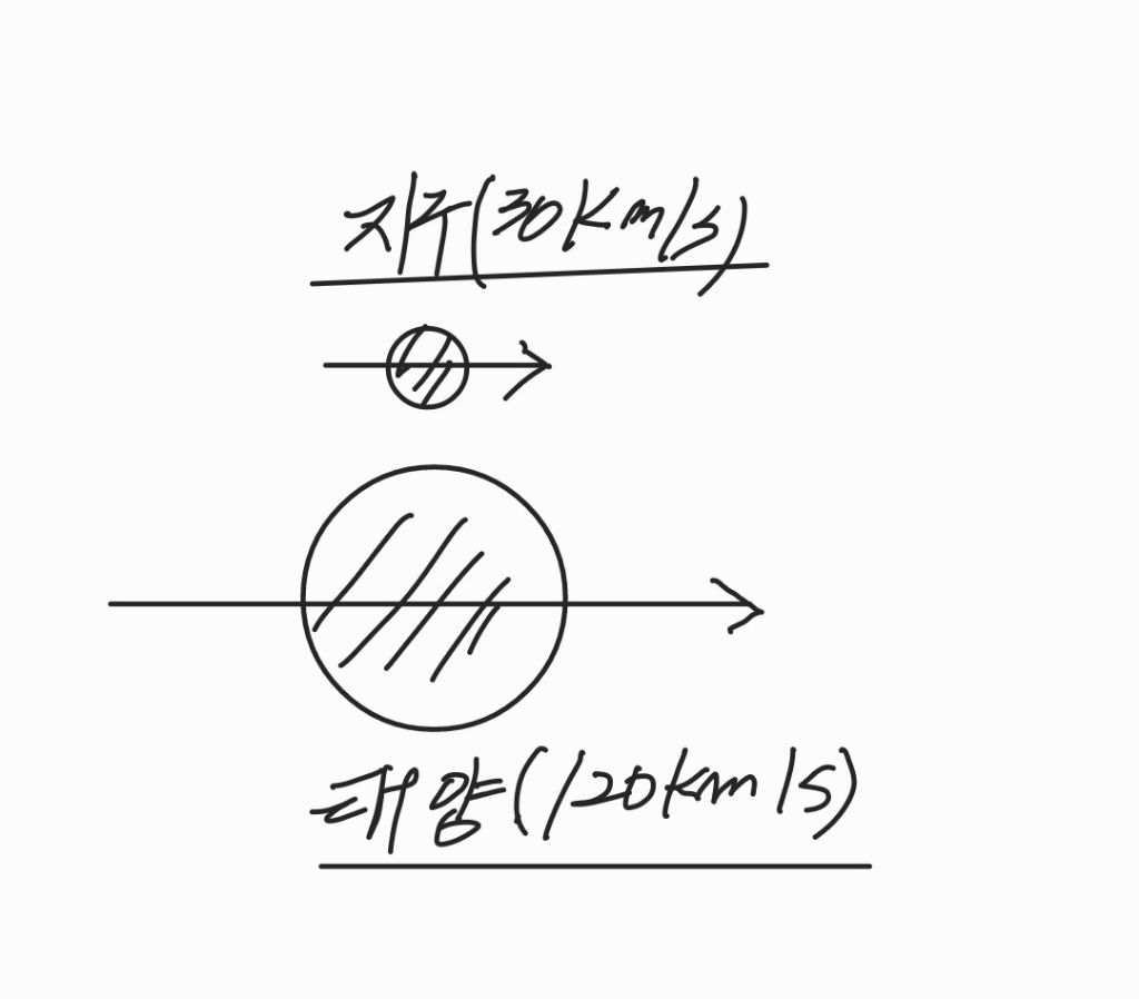 (지구의 공전속도 (30km/s)+태양의 공전속도(120km/s)=불가능)입니다.
