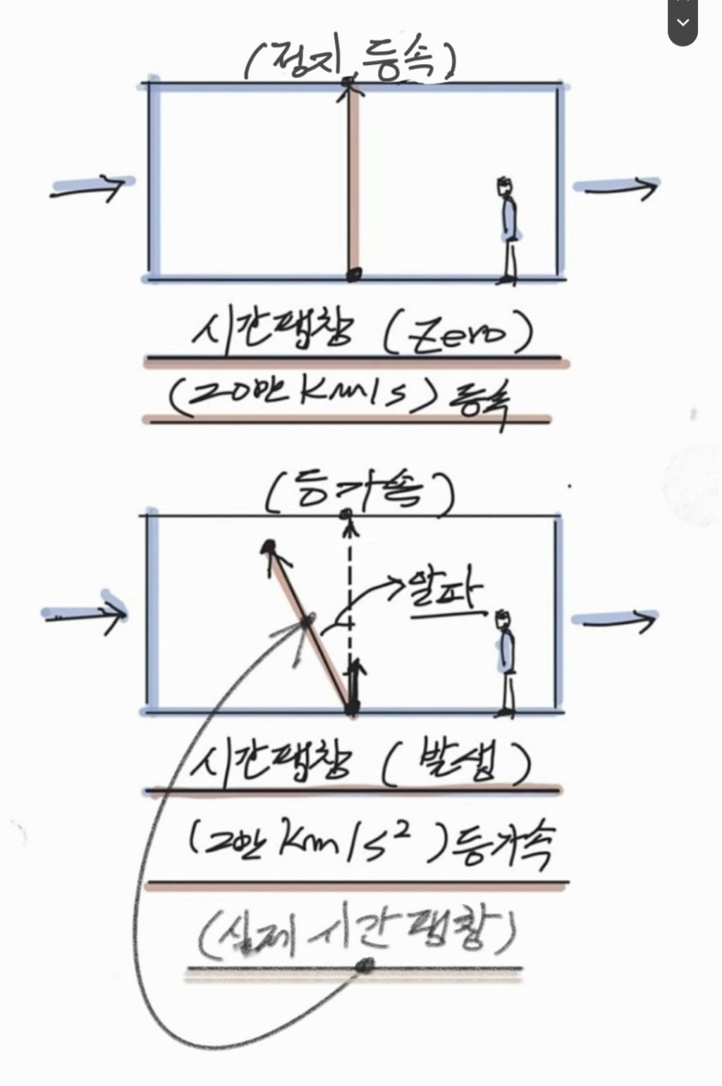 (우주 실제 시간팽창 물리현상의 그림예시)...