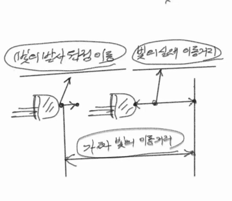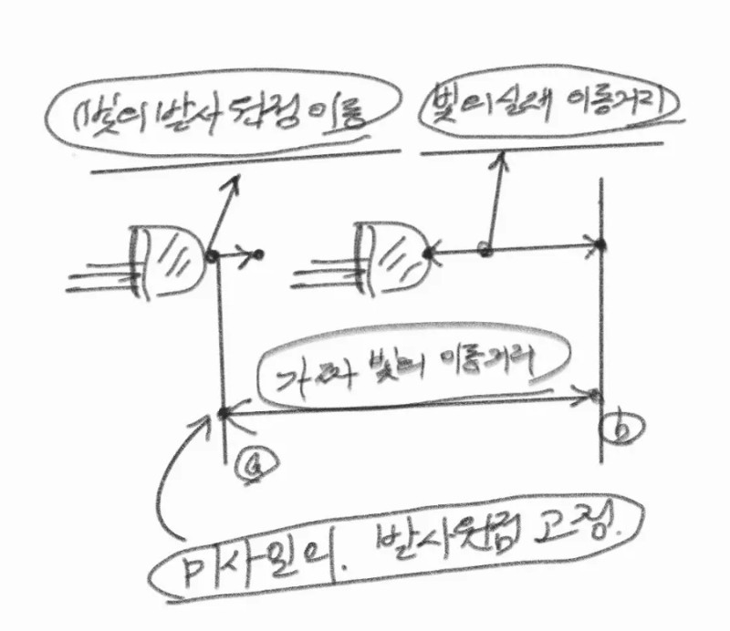 마이컬슨과 몰리의 (빛의 속도 절대성 실험결과 그림예시)...