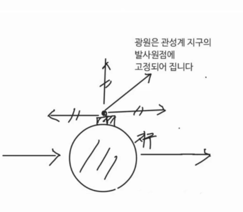 빛을발사한 관성계 지구의 발사원점 한곳에 고정되어집니다.