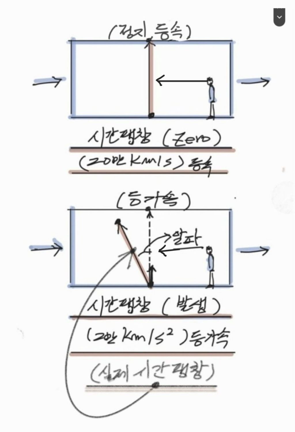 위 (우주선(p)의 시간팽창 사고실험에서의 오류가 발생하는 진짜이유는...