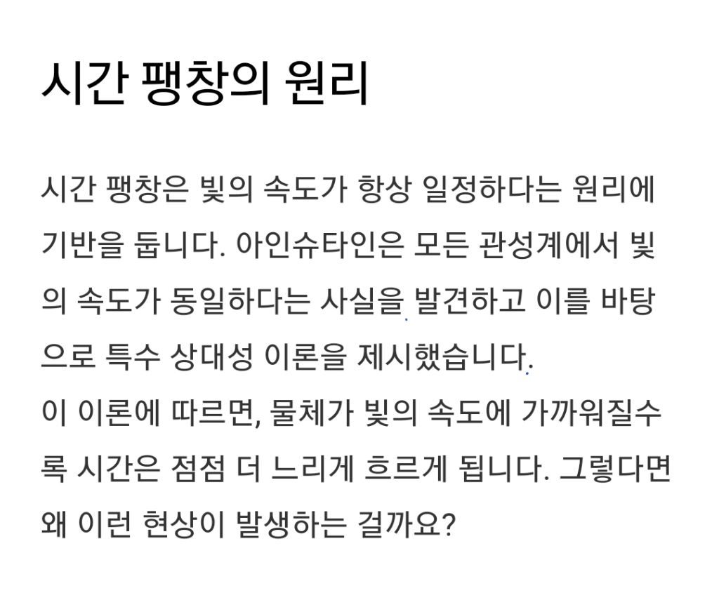 (물체가 빛의 속도에 가까워지질수록 시간은 점점 더 느리게 흐르게 됩니다.)는