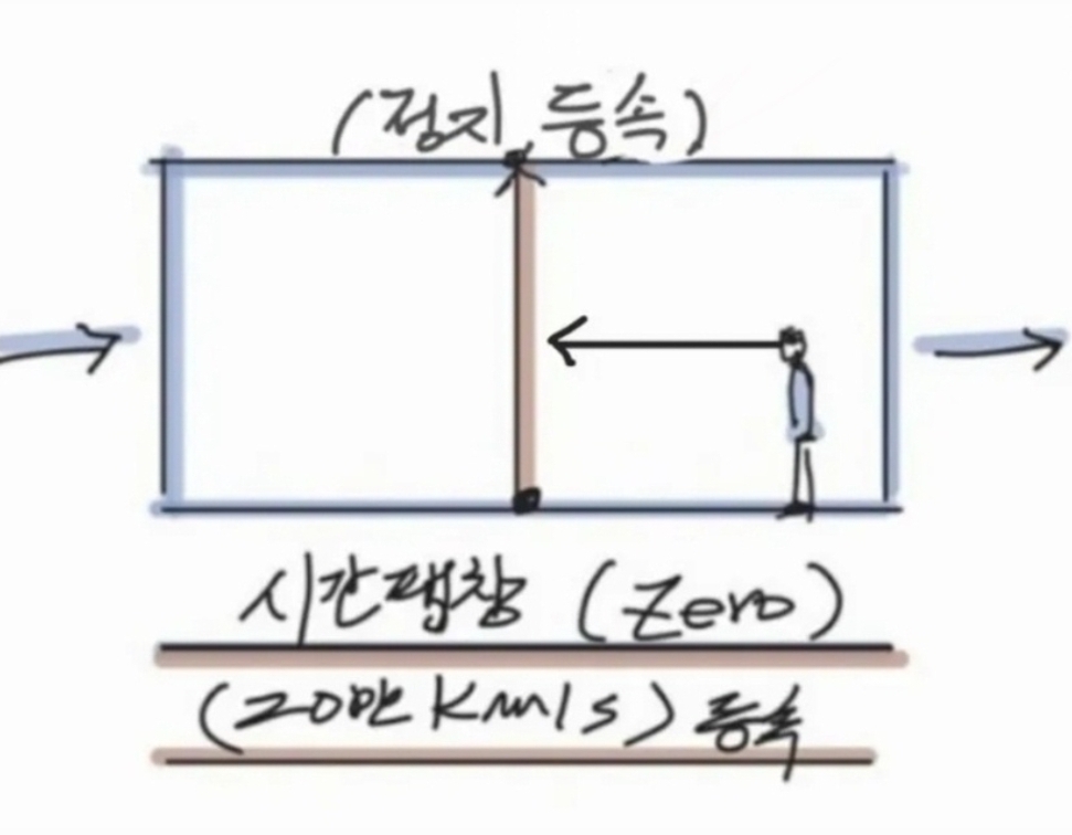 우주 무중력 (정지,등속도)관성좌표계 우주선에서의 실제 시간팽창 물리현상.
