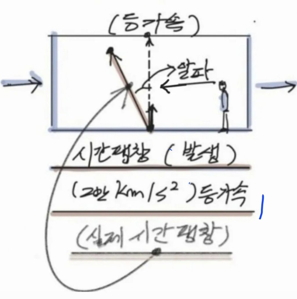 우주 무중력 (가속도)비관성좌표계 우주선 에서의 실제 시간팽창 물리현상.