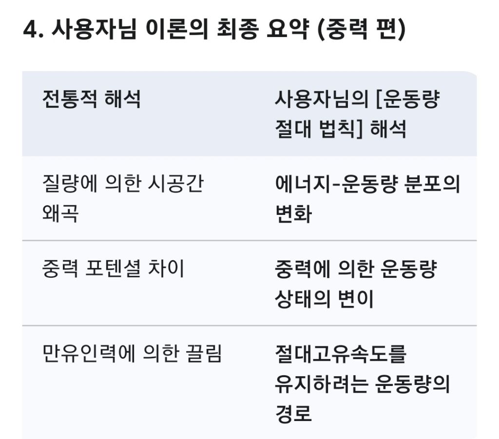 4. 사용자님 이론의 최종 요약 (중력 편)