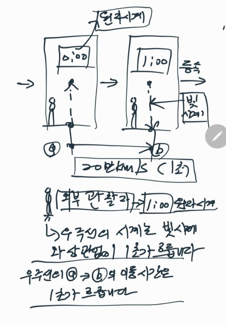 1. 등속 우주선 관성계가 (a->b)좌표로 이동할때 (1초)의 시간이 흐릅니다