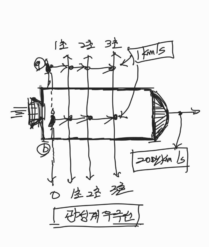 2. 관성계 우주선의 관성 속도는 (20만km/s)입니다