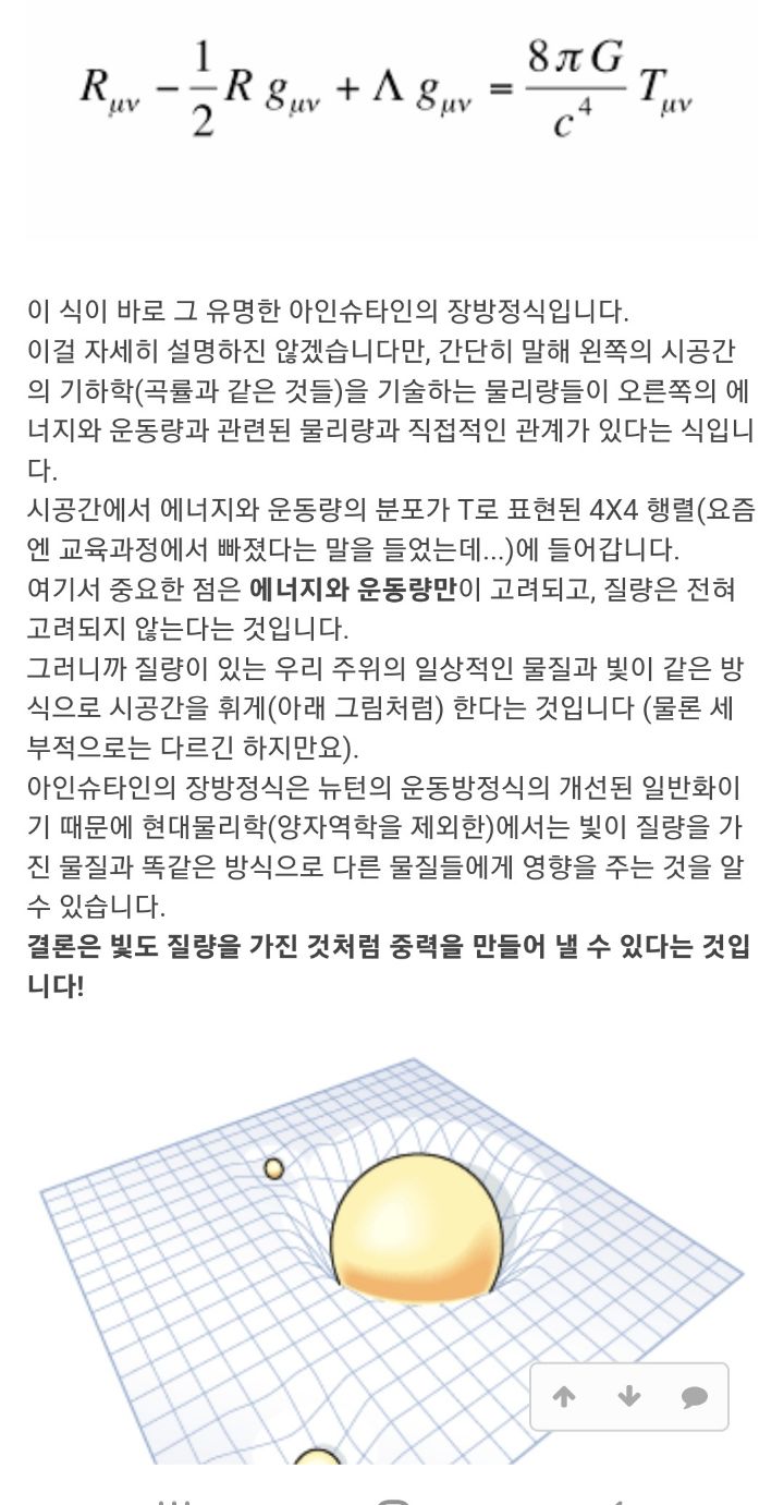 결론은 빛도 질량을 가진 것처럼 중력을 만들어 낼 수 있다는 것입니다! >