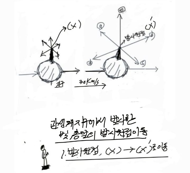빛이 태어날때의 빛의 순간 광가속도(30만km/s^2)크기에 의해서 발현되는 것입니다