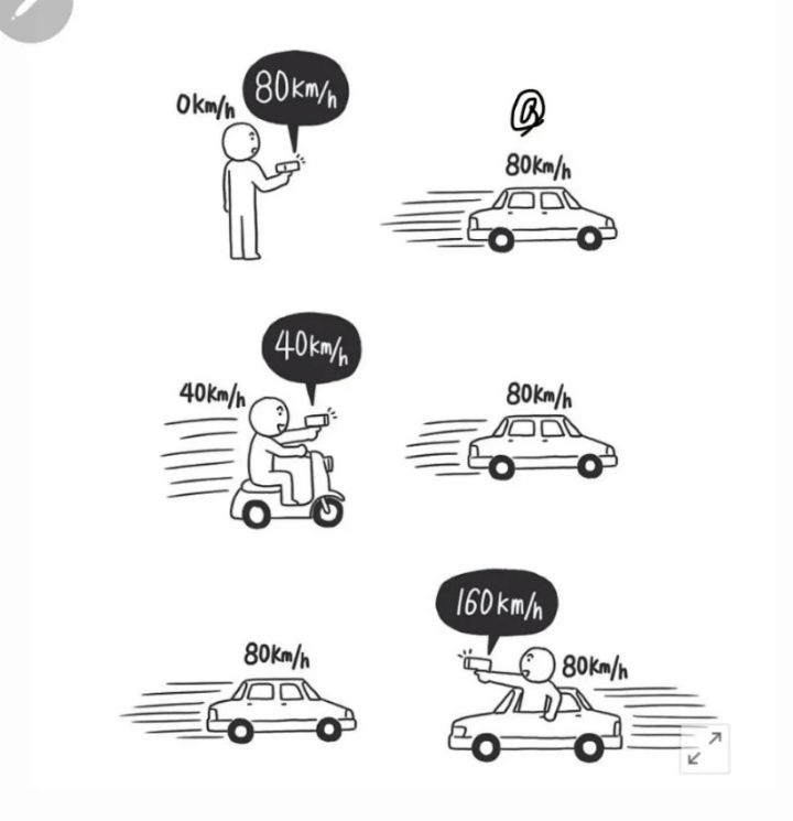 우주 절대 관성 속도는 관측자의 이동속도와 무관하게 항상 (80km/h)로 일정하게 관측이됩니다