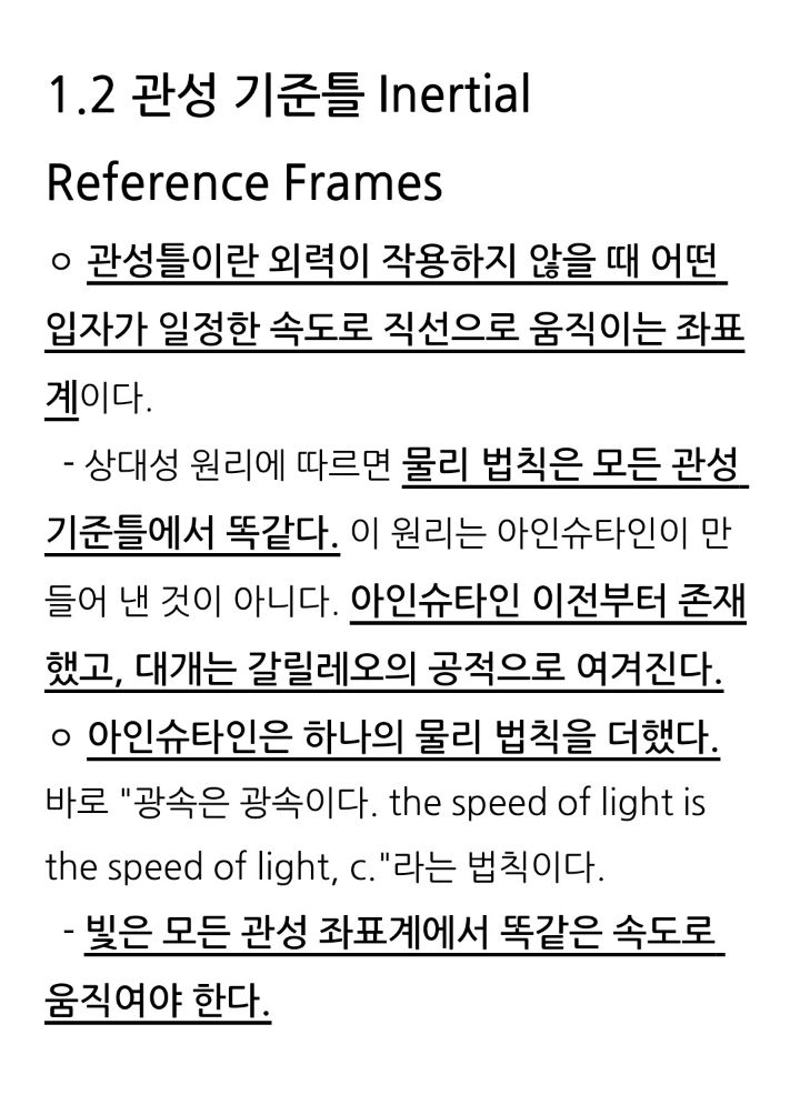 1. <- 빛은 우주 모든 관성 좌표계에서 똑같은 속도로 움직여야 한다.>