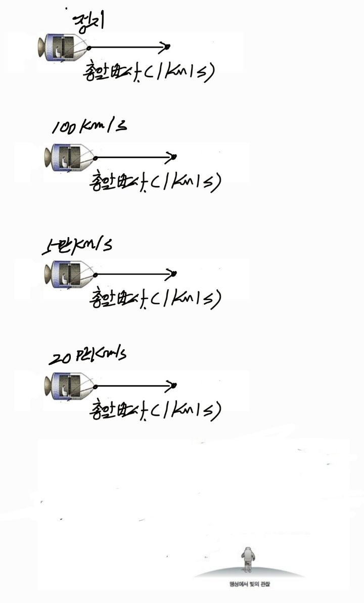 총알의속도(총속,1km/s) 우주선의 속도와 절대로 더해지지 않습니다