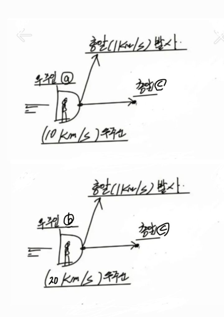 우주선에서발사한 총알의발사속도(1km/s)는 원래부터 광속과 동일한 우주 절대 불변의 속도물리량 이었던 것입니다