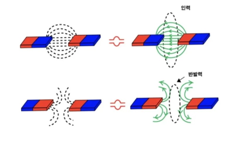 같은극끼리는 서로 밀어내는 물리적인 (힘)이있으며