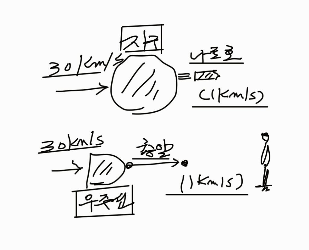 (우주선)의 우주 주행 절대속도(30km/s)크기와는 실제로는 절대 더해지지 않습니다