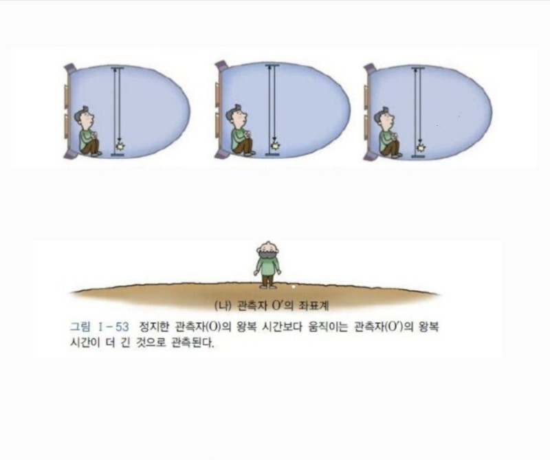 관성계 우주선안에서 관측자가 직접적으로 관측할때에 발생하지 않던 시간팽창 물리현상이