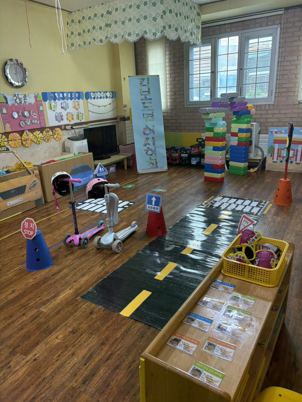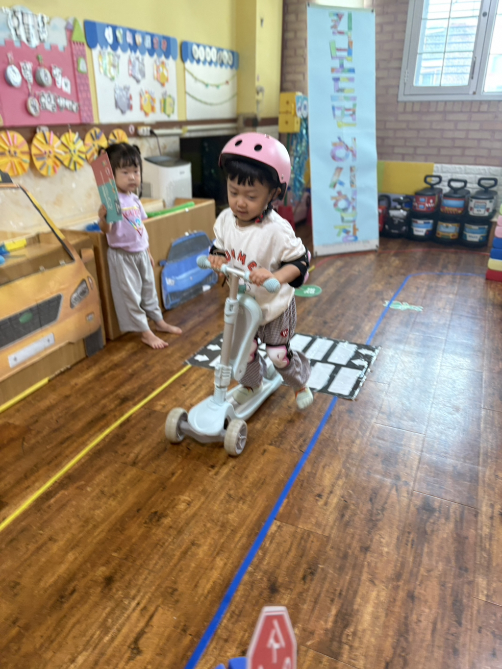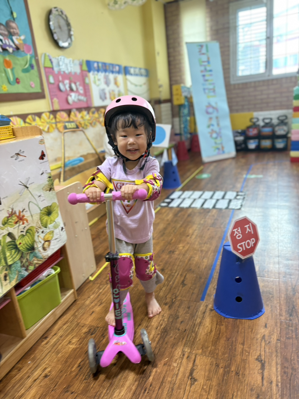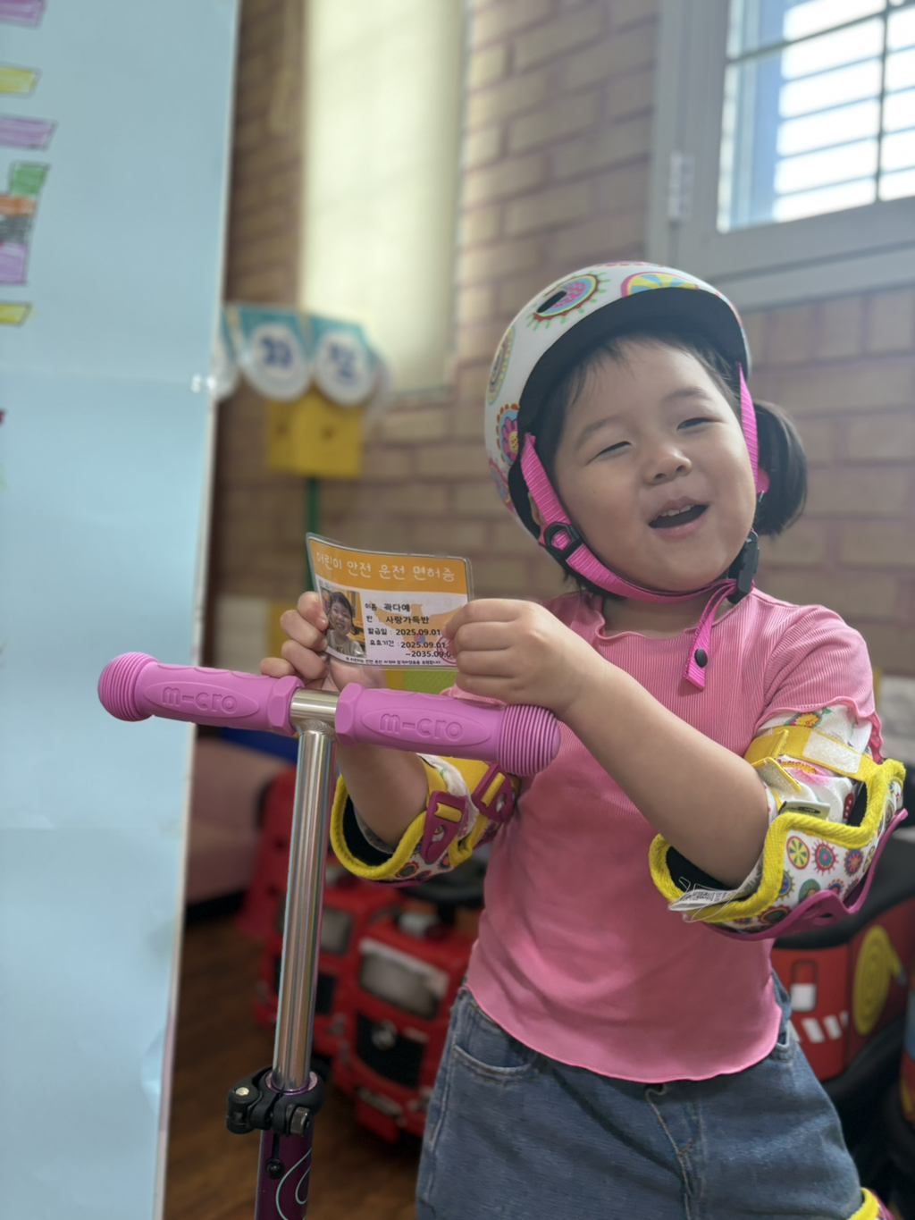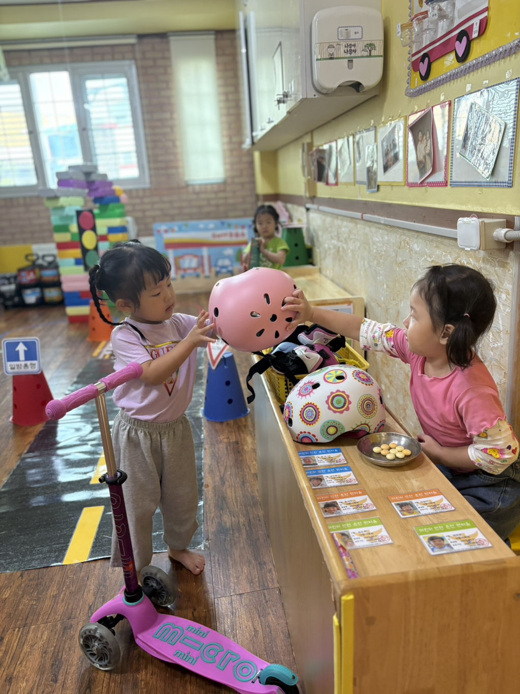 일찍 등원한 사랑둥이들이 ‘킥보드 면허 시험장’ 간판을 만들었어요🛴