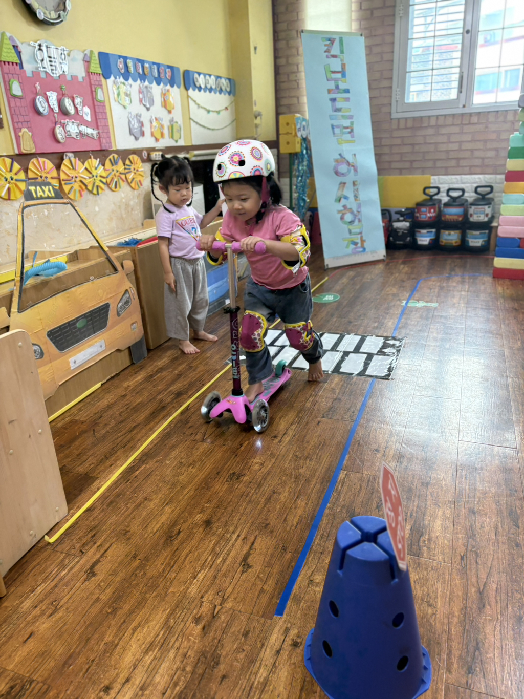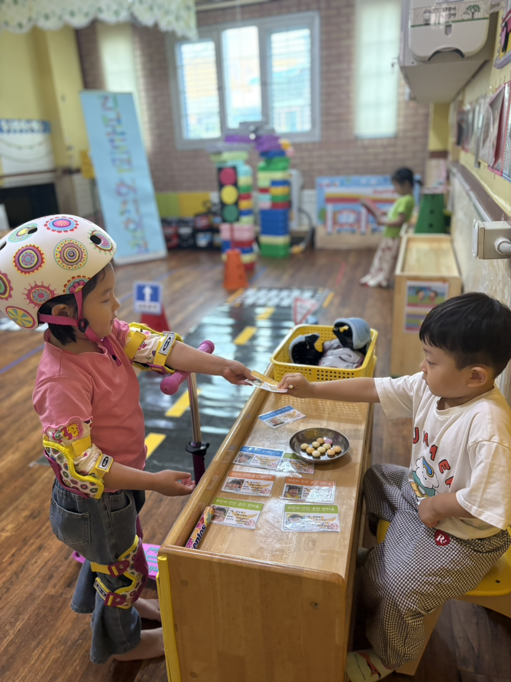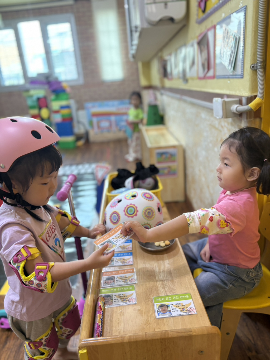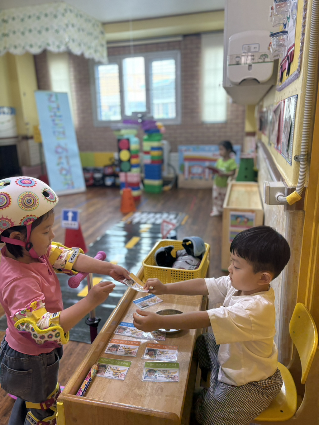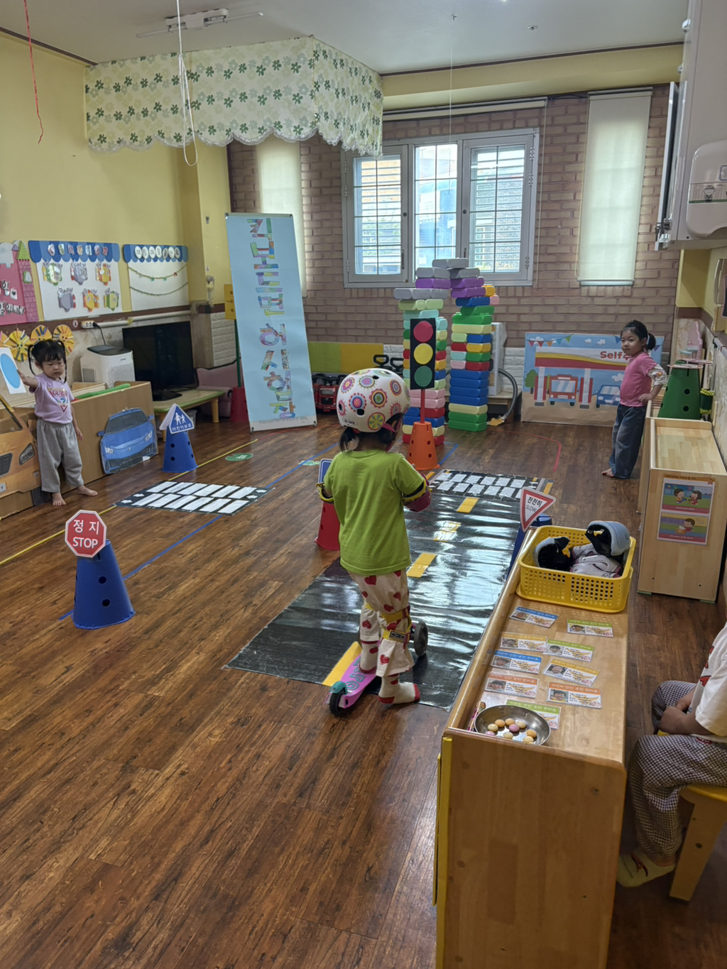 일찍 등원한 사랑둥이들이 ‘킥보드 면허 시험장’ 간판을 만들었어요🛴