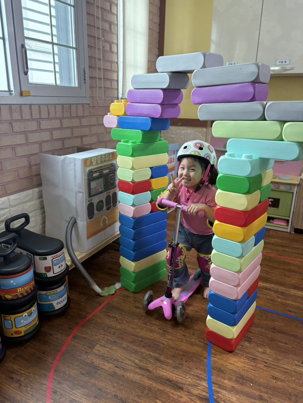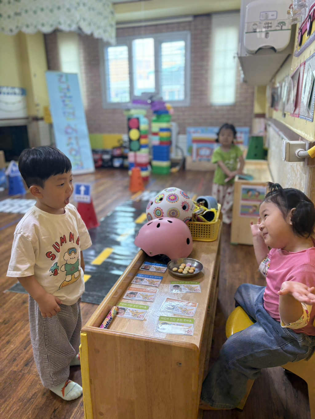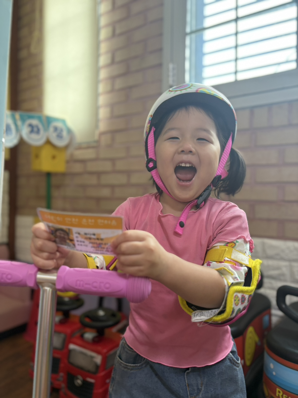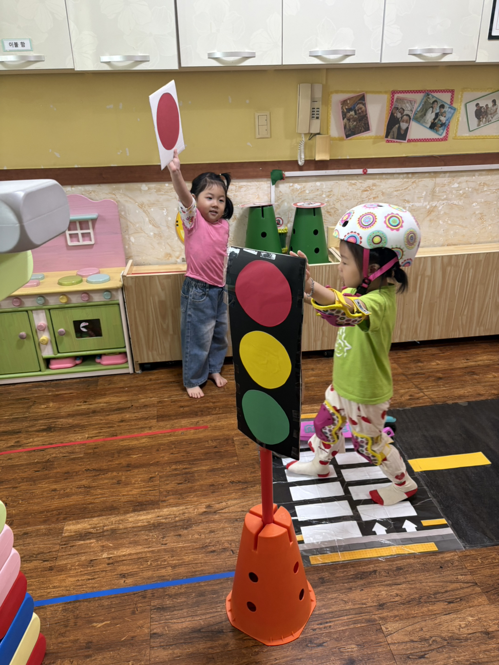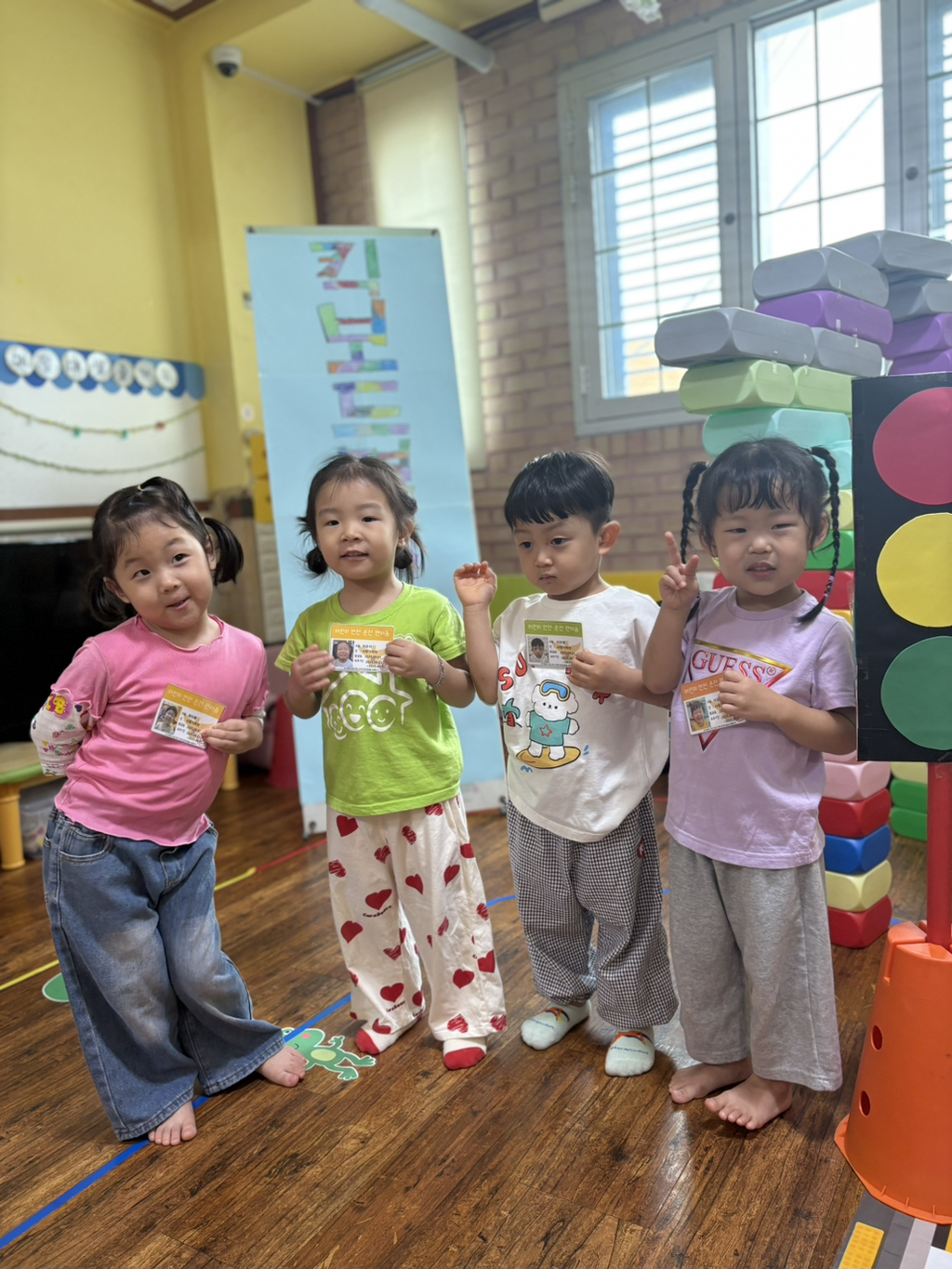 일찍 등원한 사랑둥이들이 ‘킥보드 면허 시험장’ 간판을 만들었어요🛴