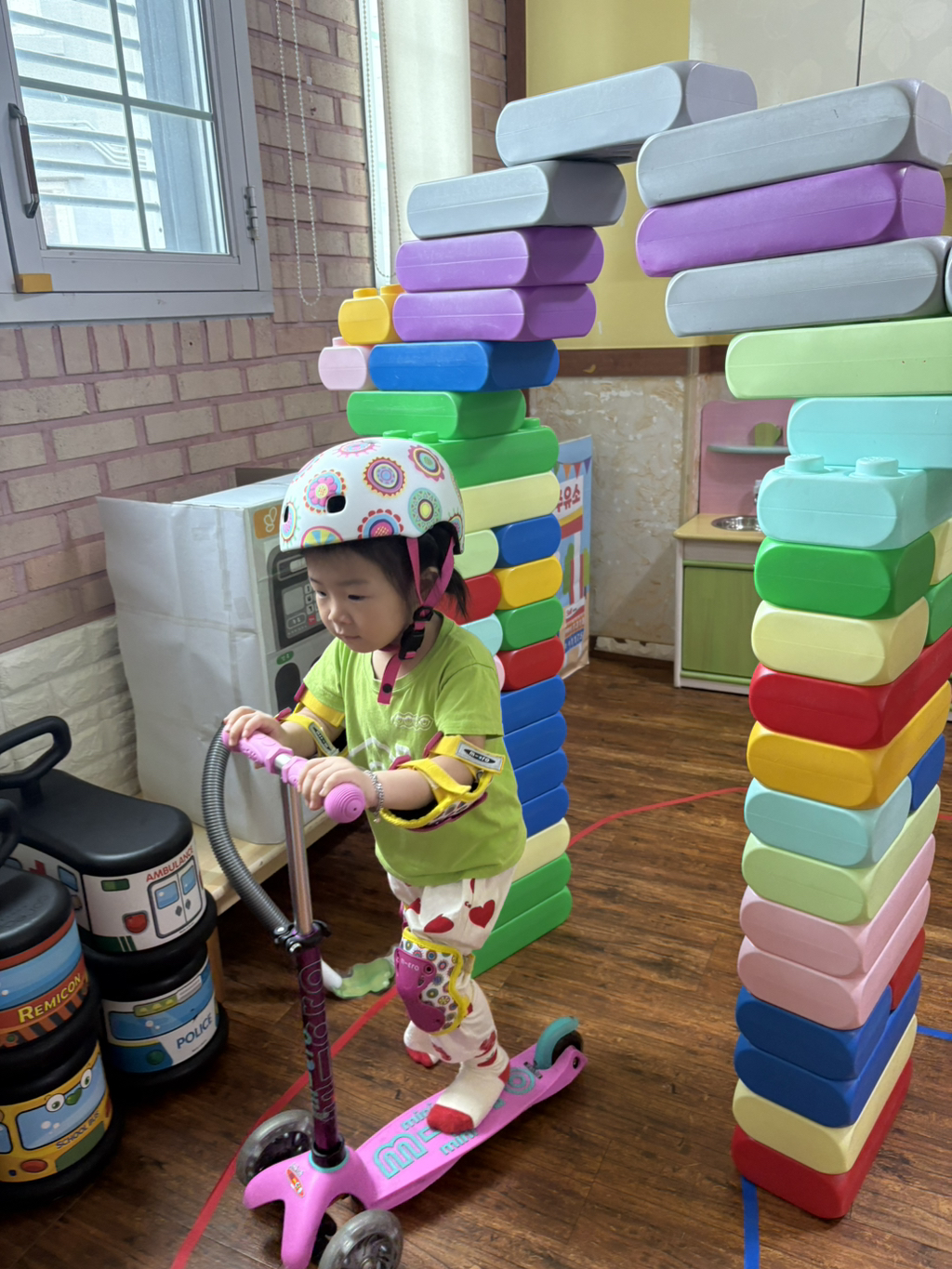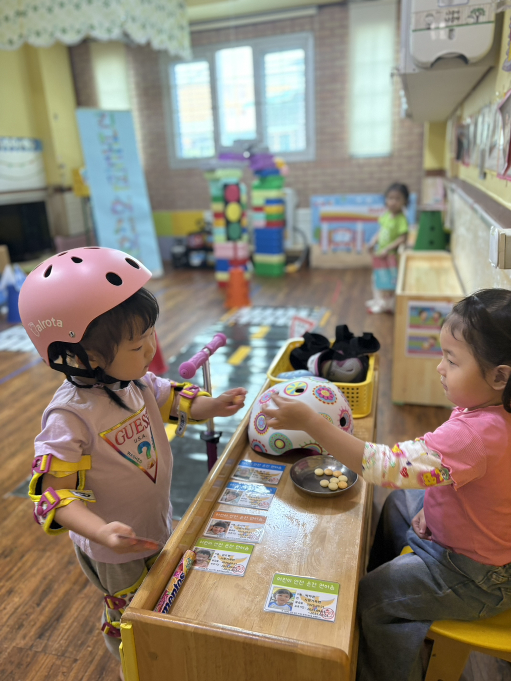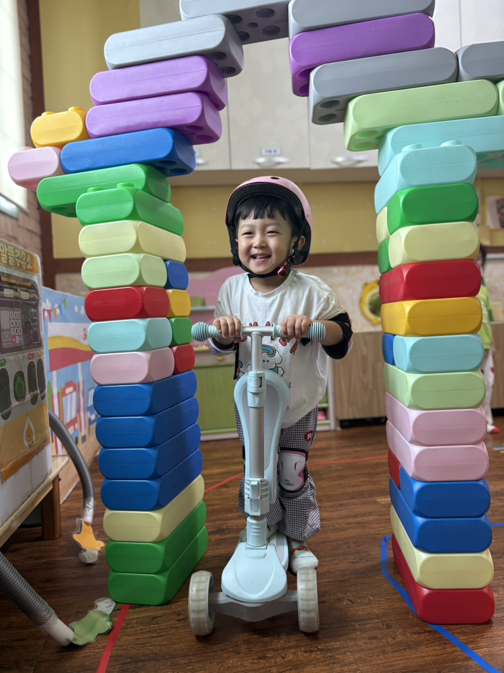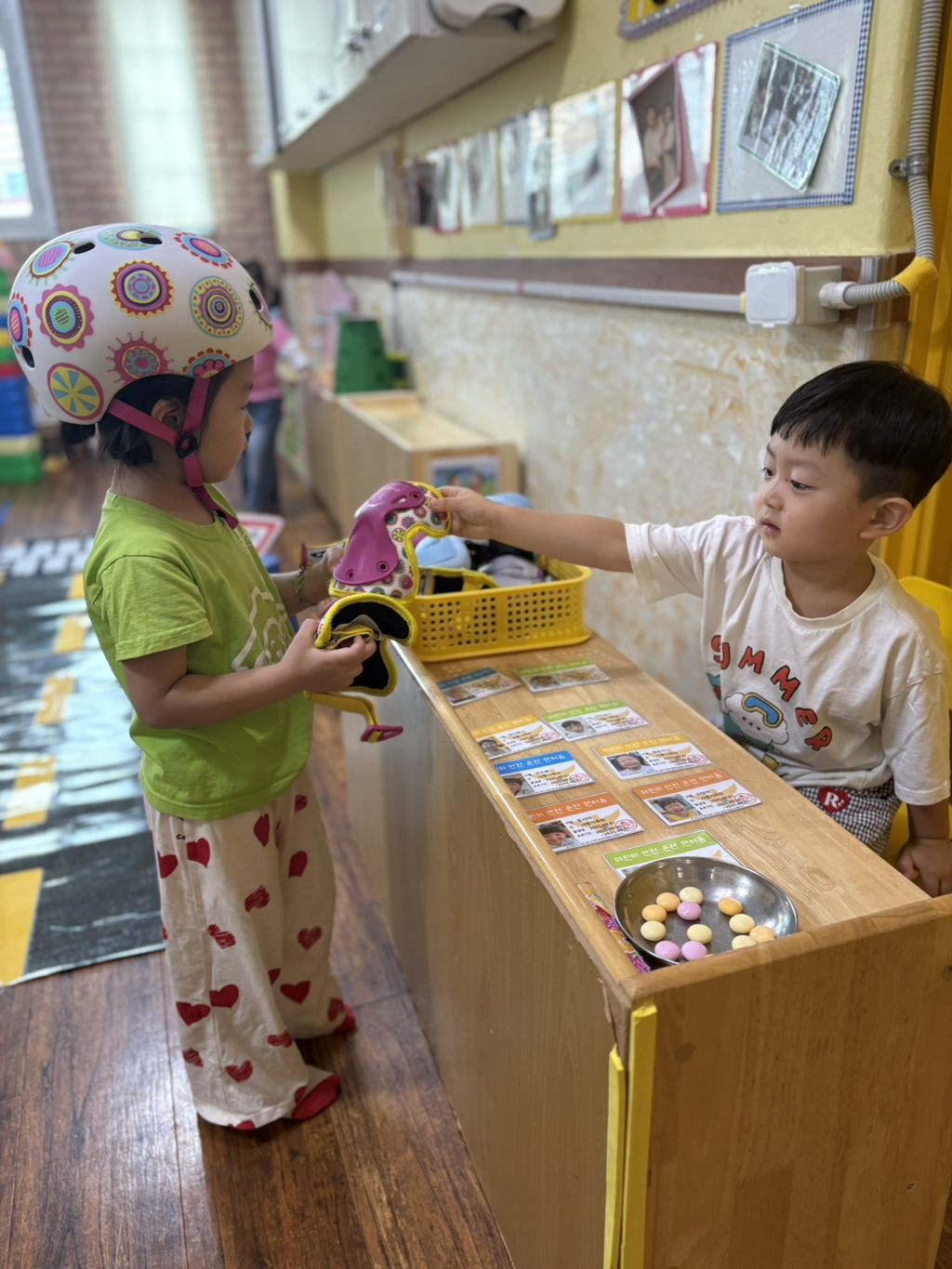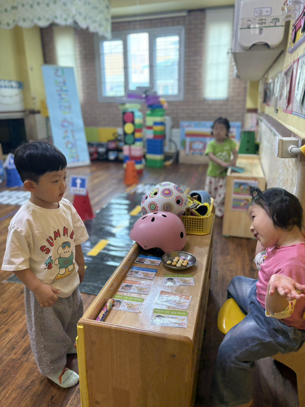 일찍 등원한 사랑둥이들이 ‘킥보드 면허 시험장’ 간판을 만들었어요🛴
