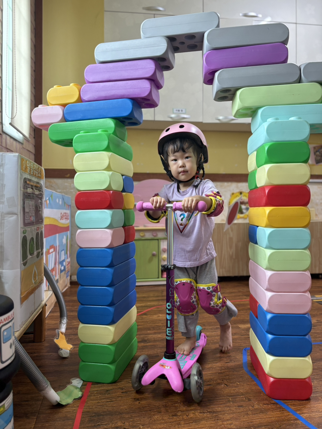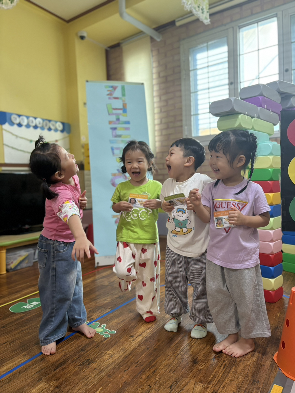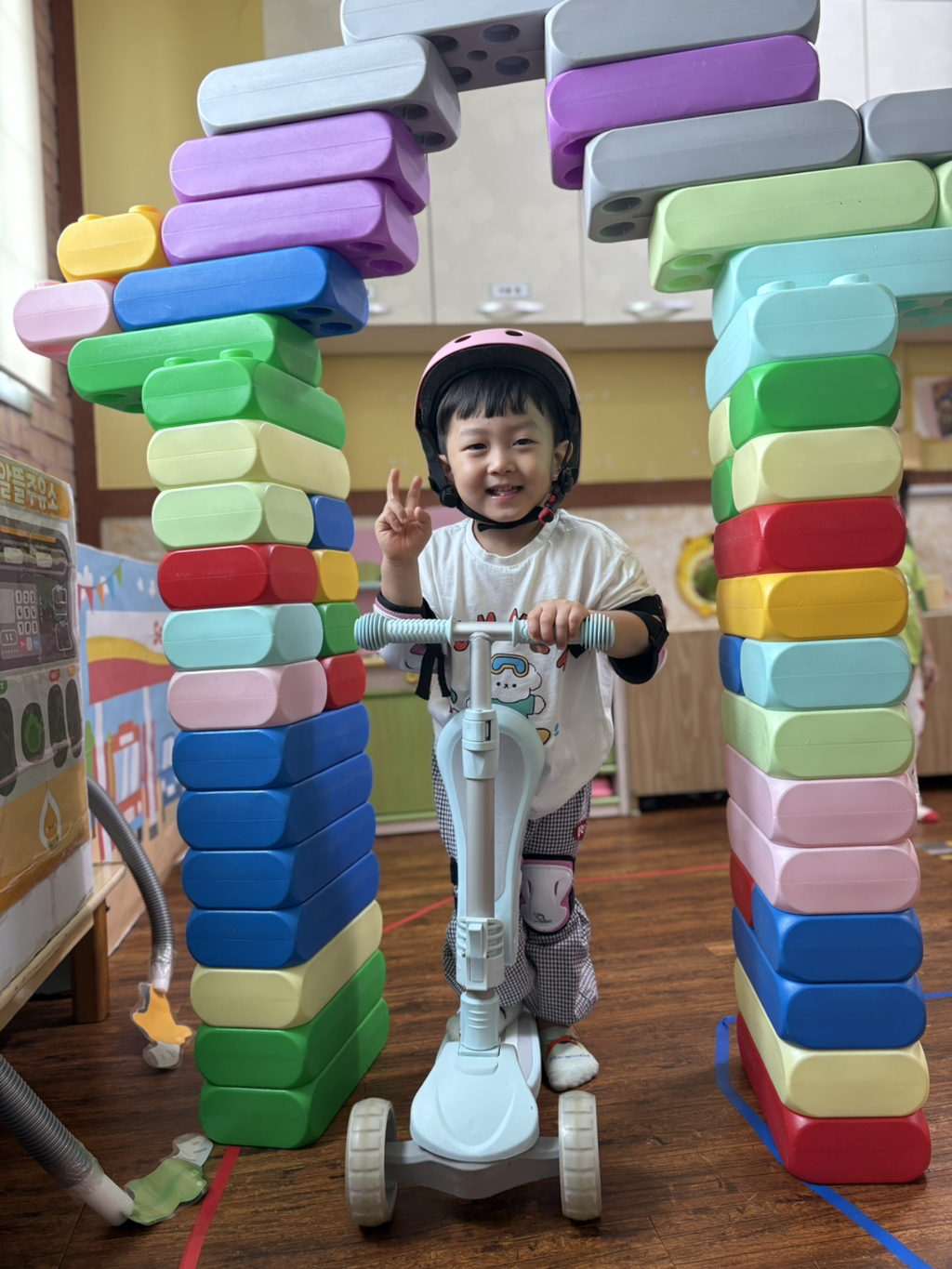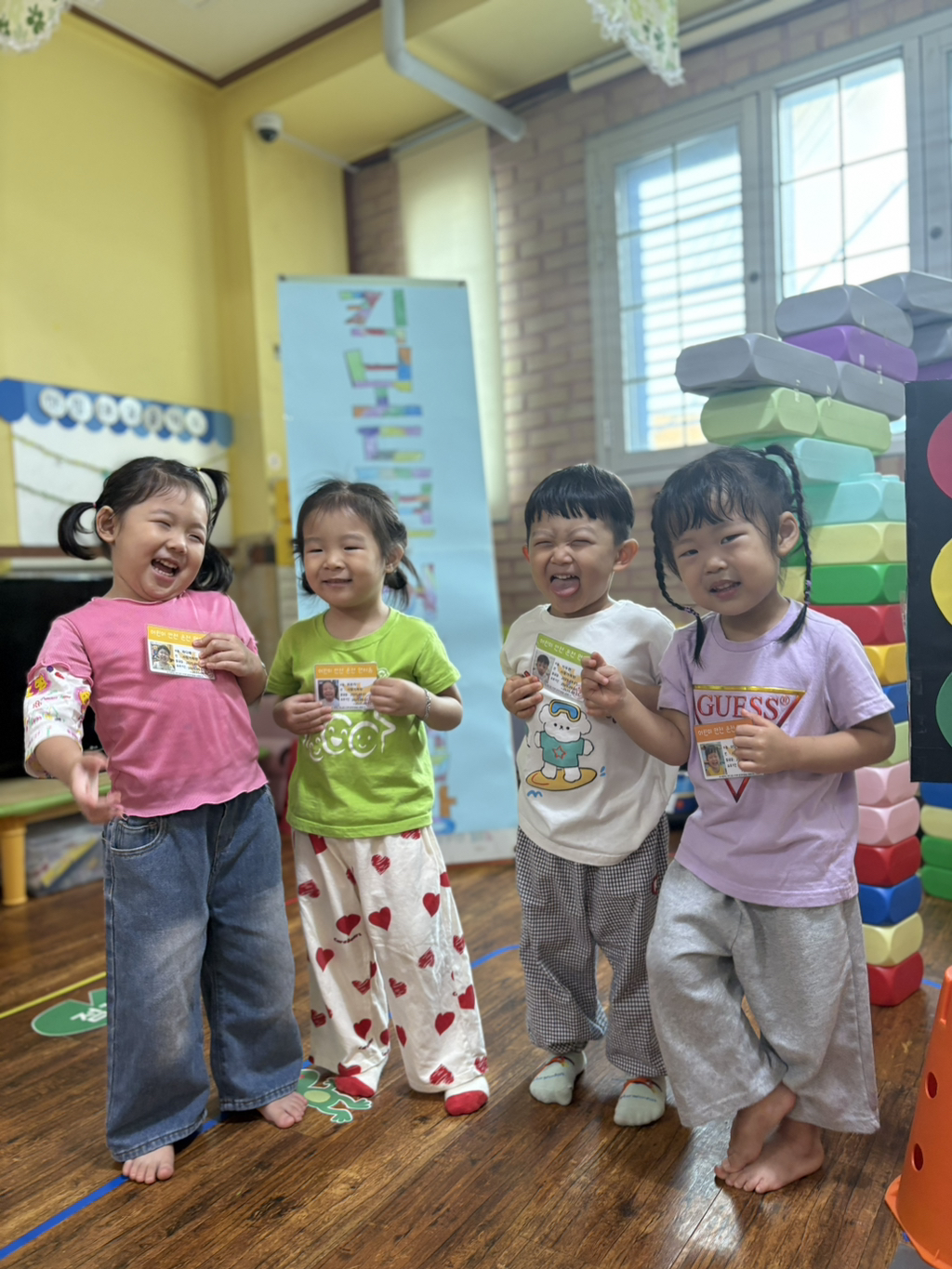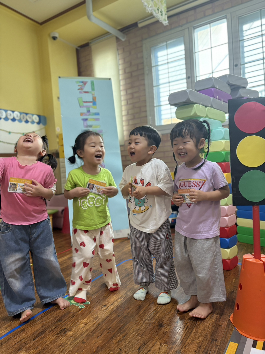 일찍 등원한 사랑둥이들이 ‘킥보드 면허 시험장’ 간판을 만들었어요🛴