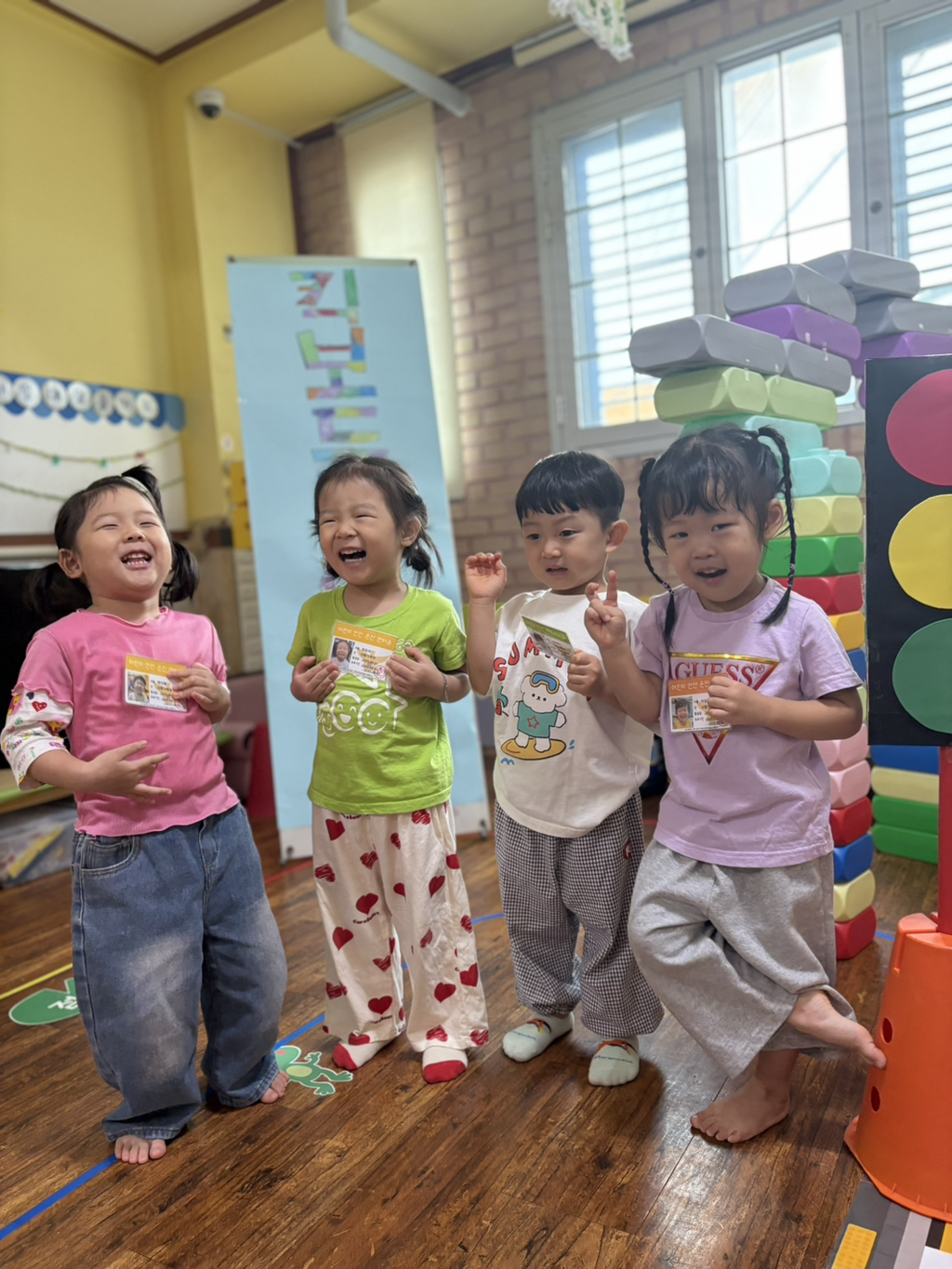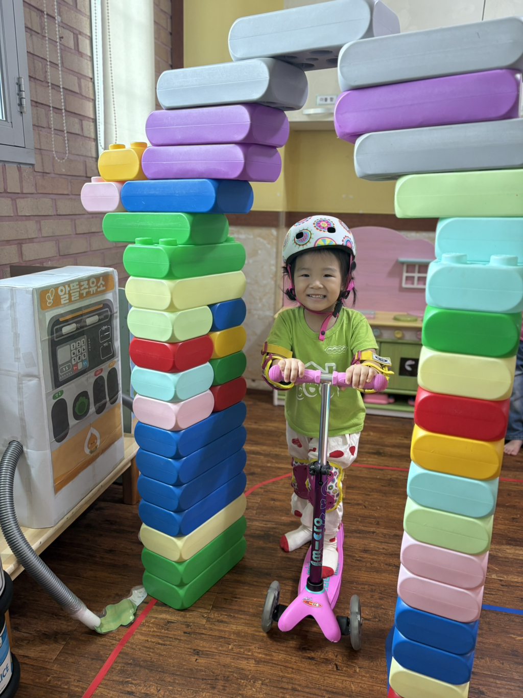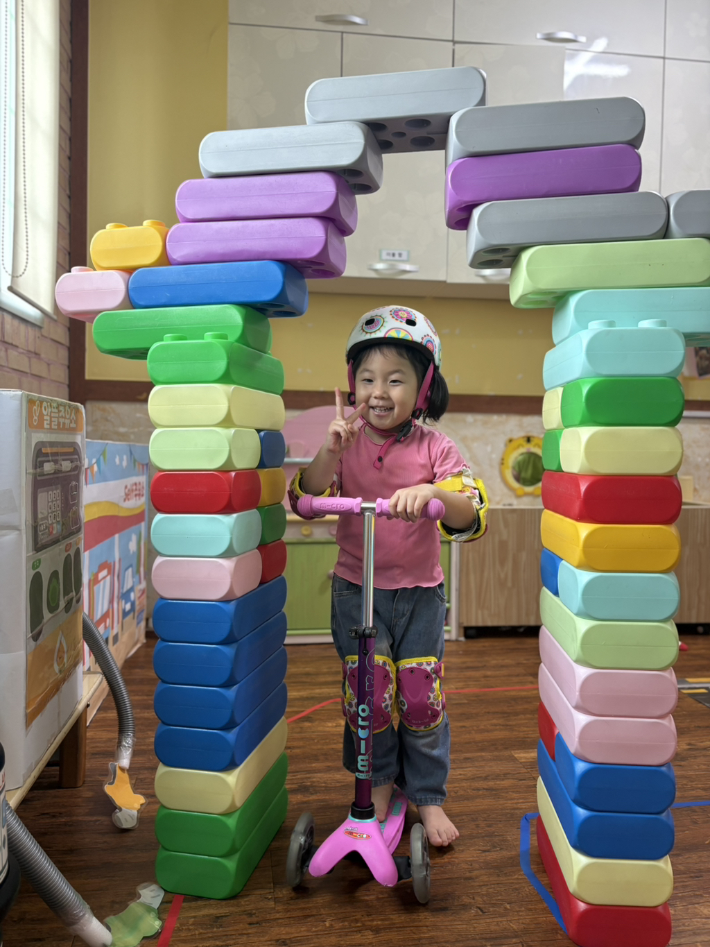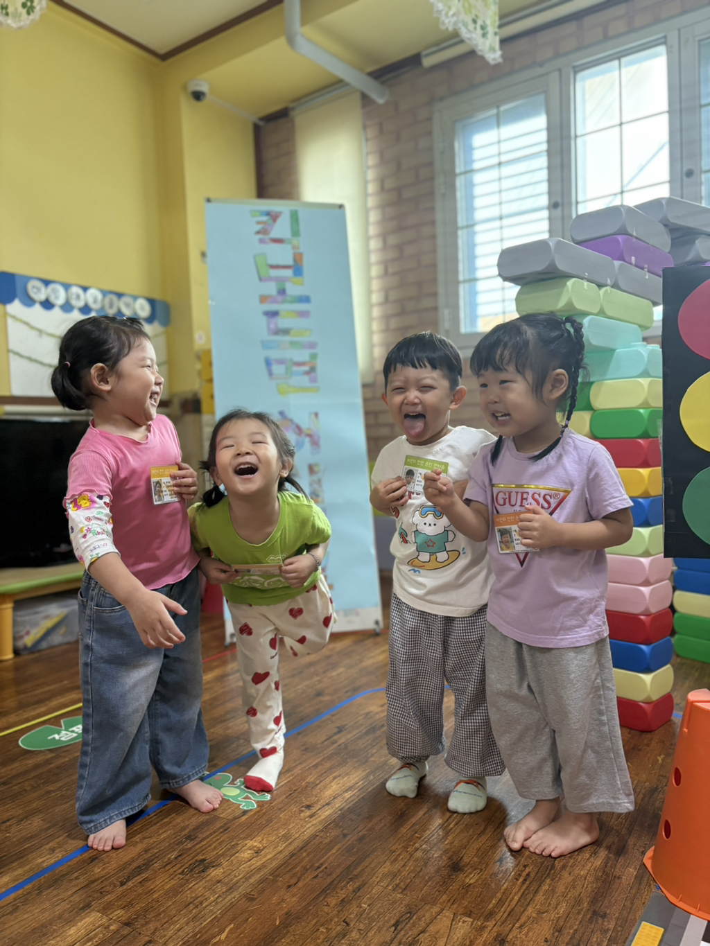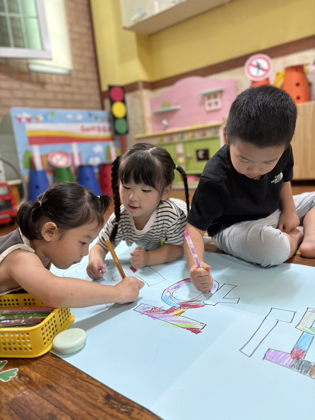 일찍 등원한 사랑둥이들이 ‘킥보드 면허 시험장’ 간판을 만들었어요🛴