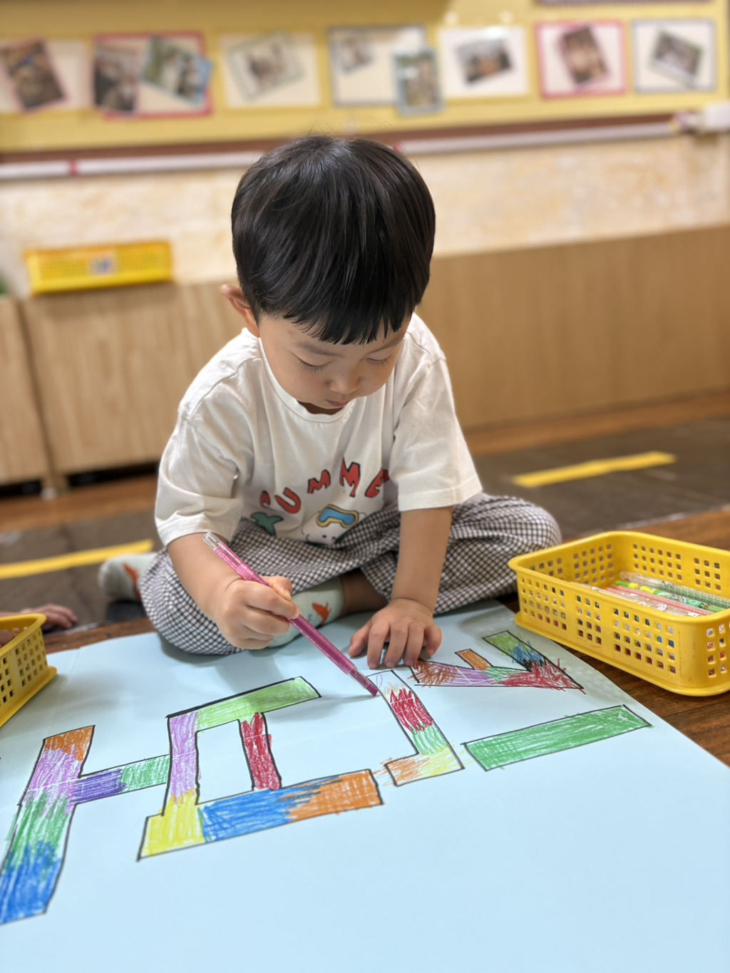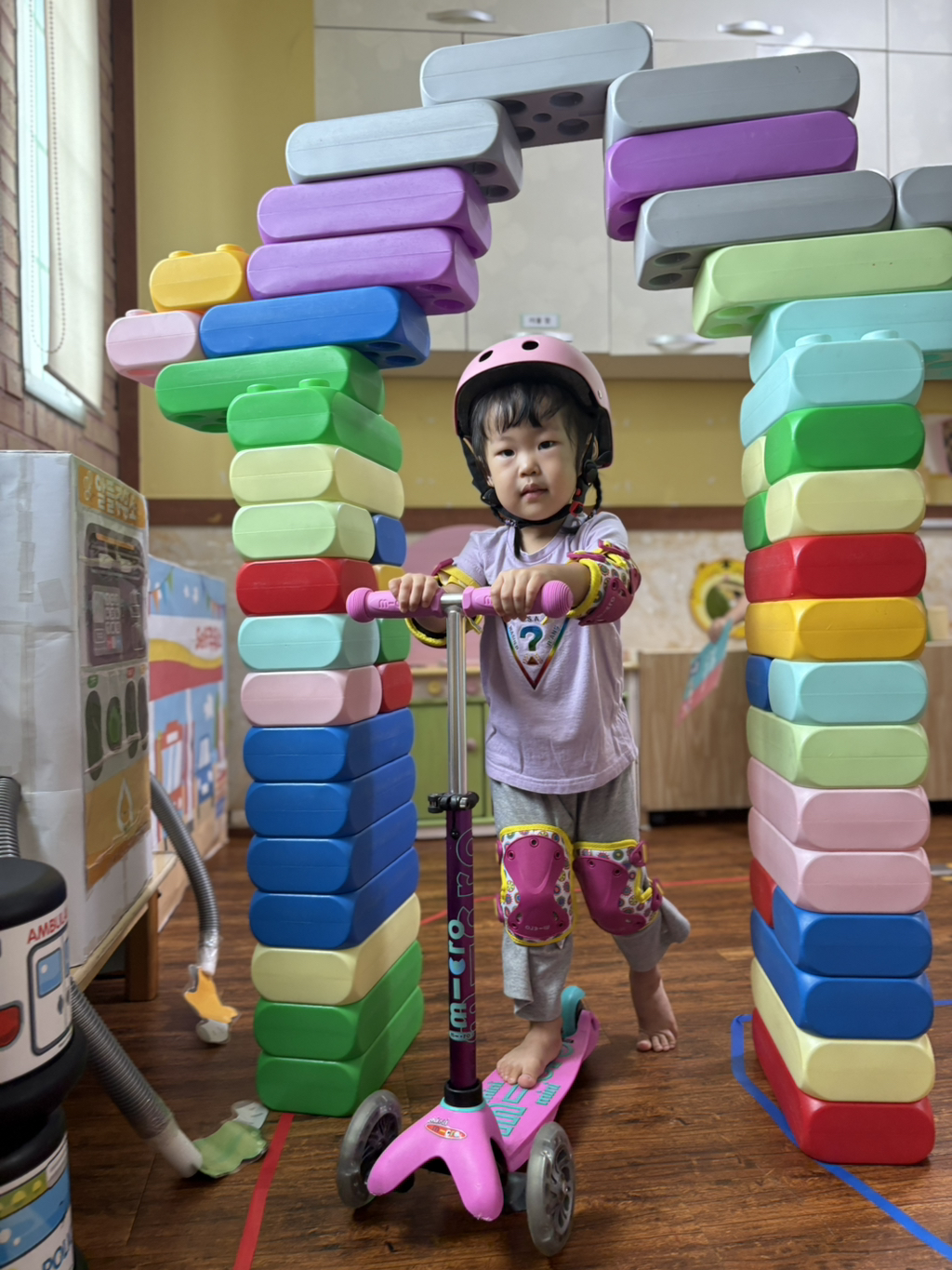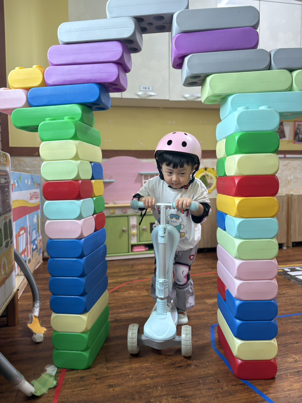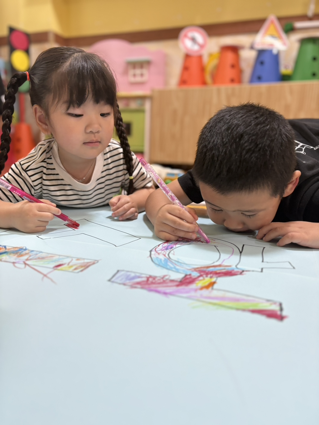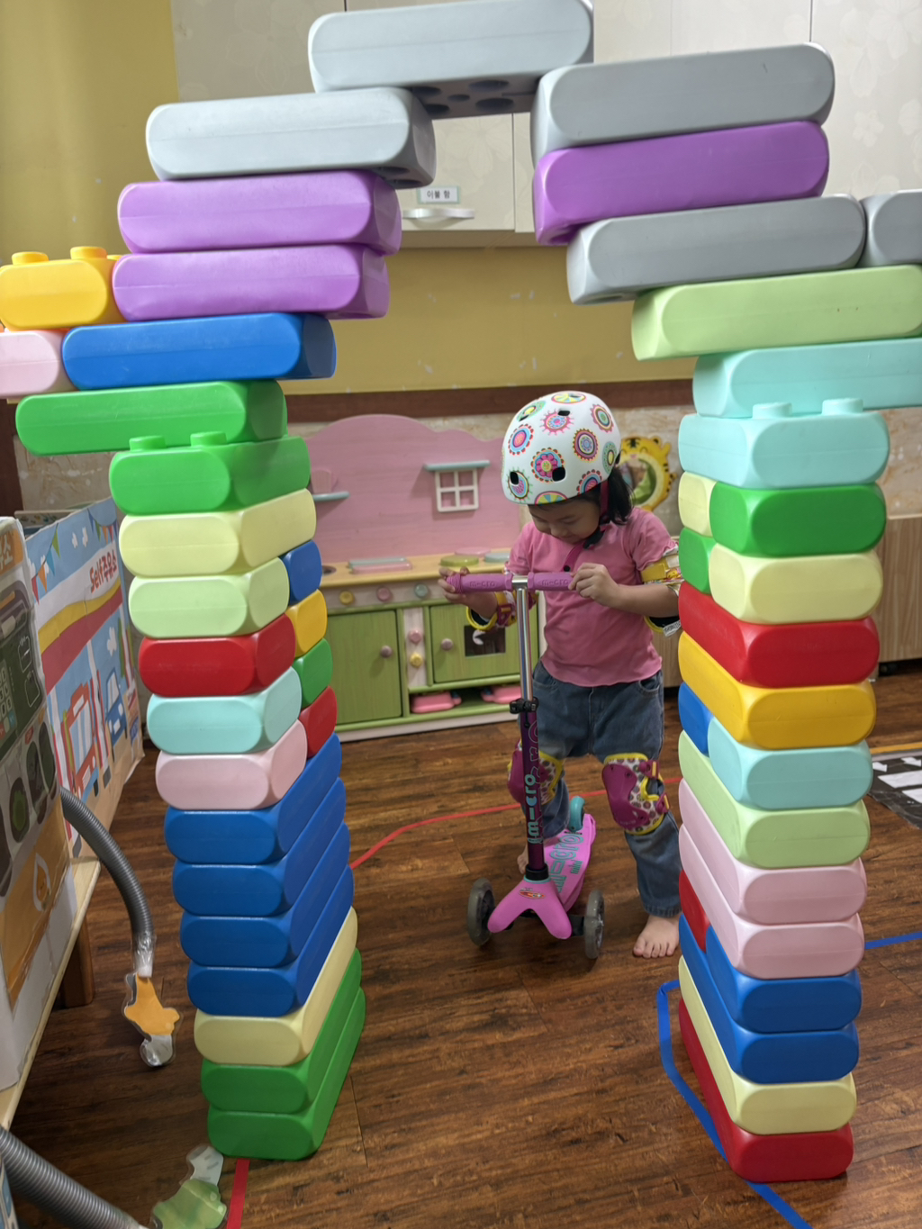 일찍 등원한 사랑둥이들이 ‘킥보드 면허 시험장’ 간판을 만들었어요🛴