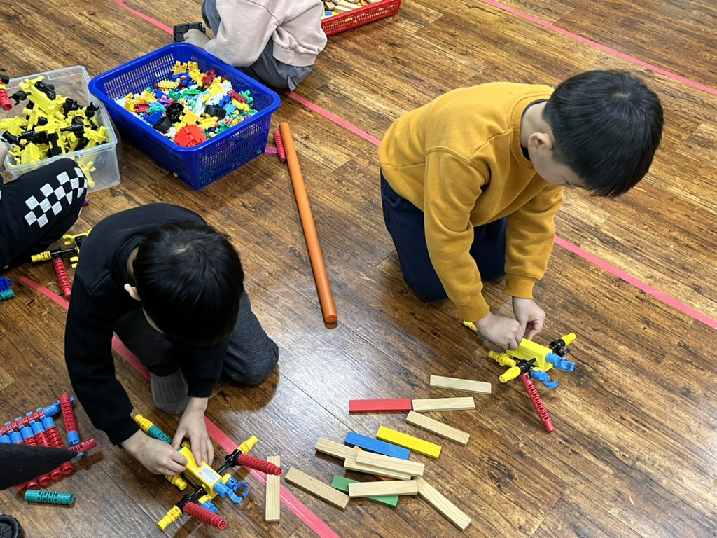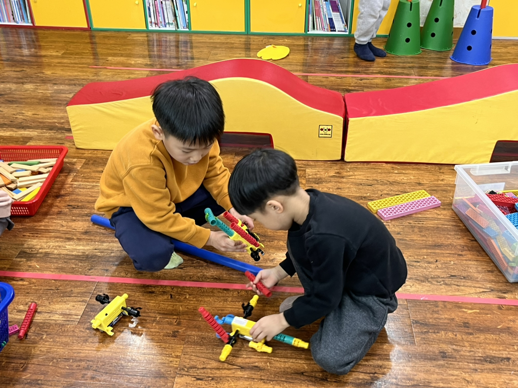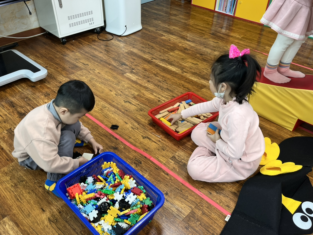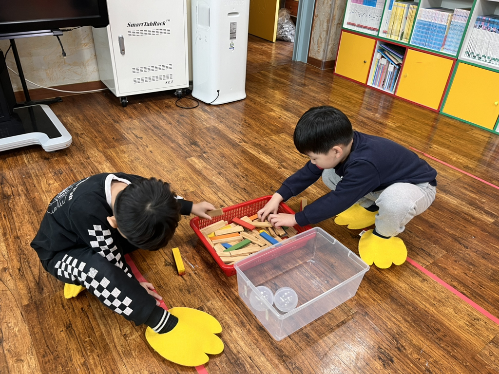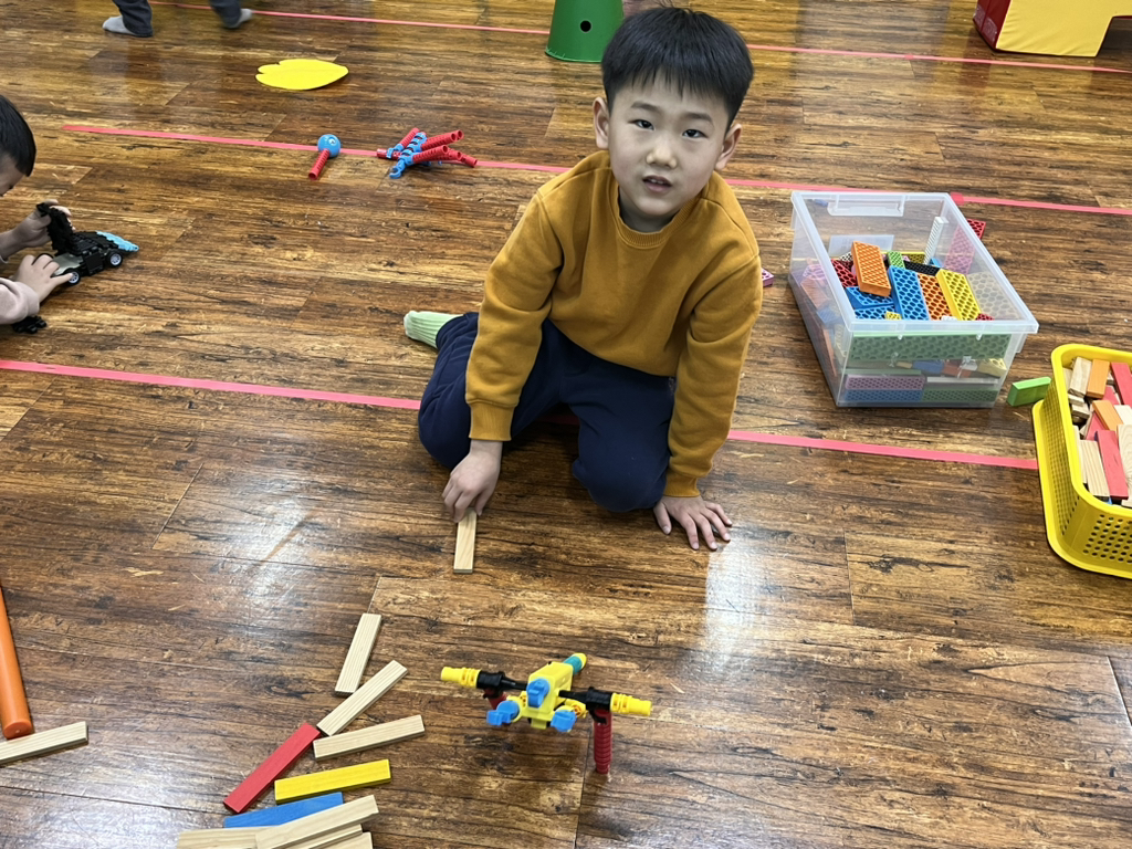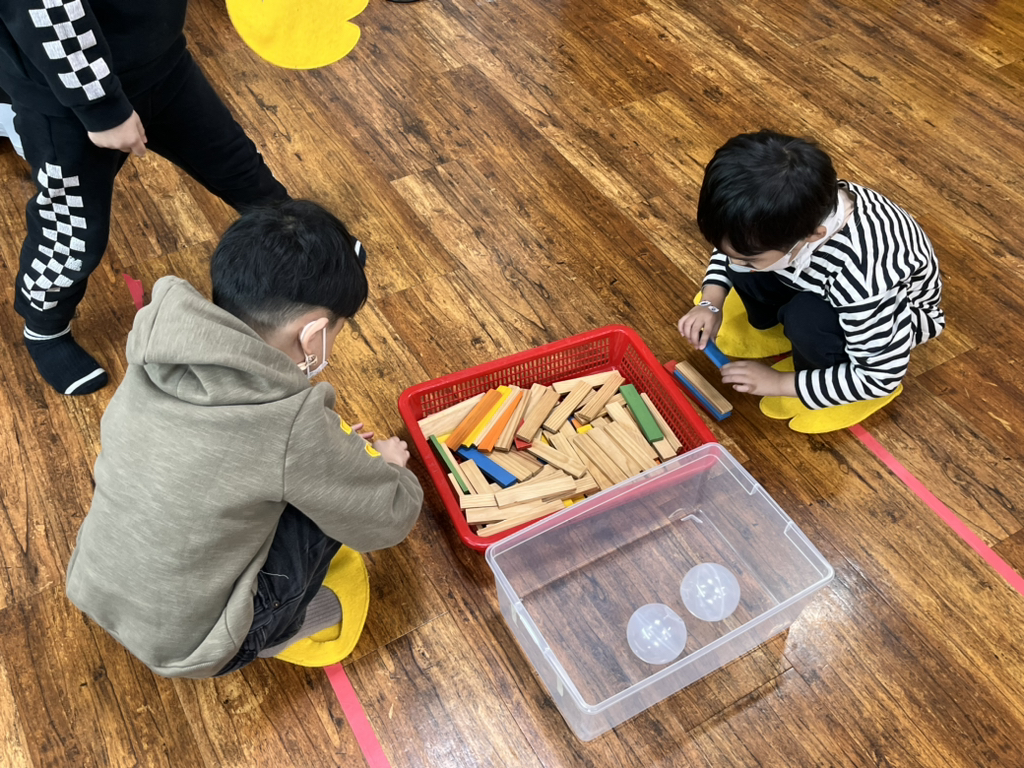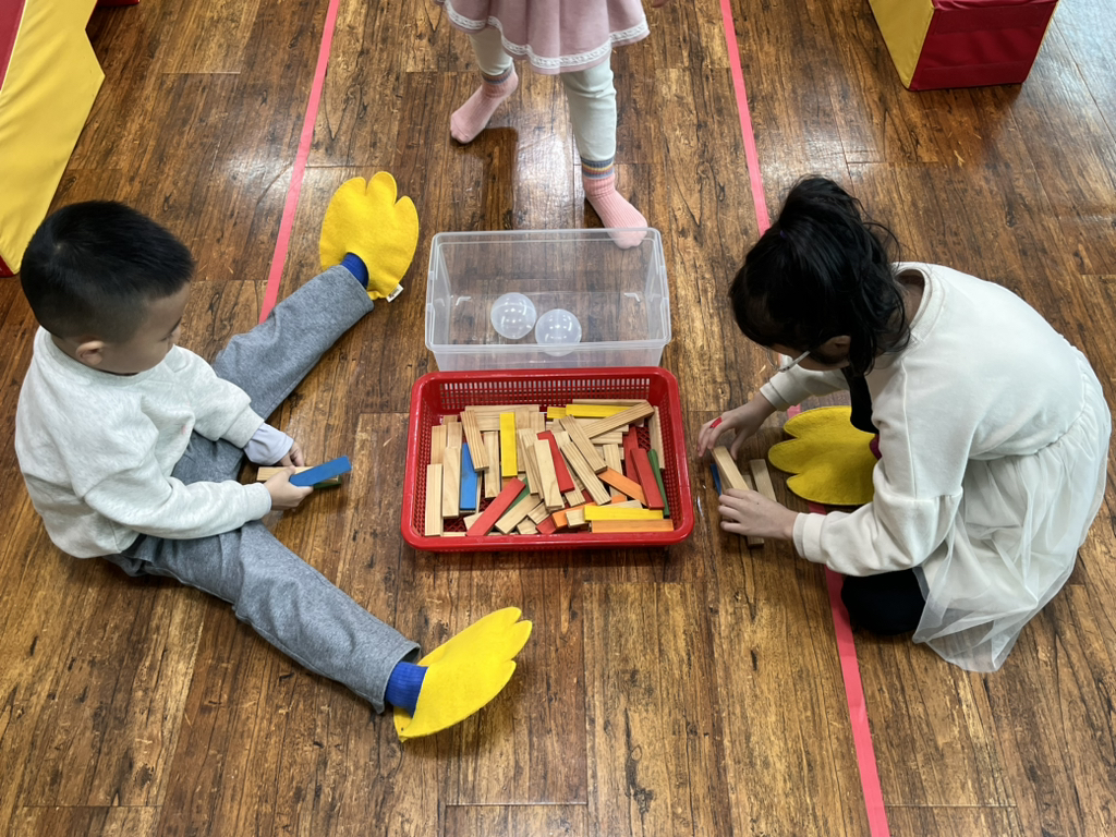 펭귄 발을 신어본 뒤 장애물을 넘어가서 나무 블록을 내 나이 7만큼 쌓아보고 돌아오면 승리 ✌️펭귄 발을 신어서 조금 어려웠지만 재밌다던 슬기들 ^^