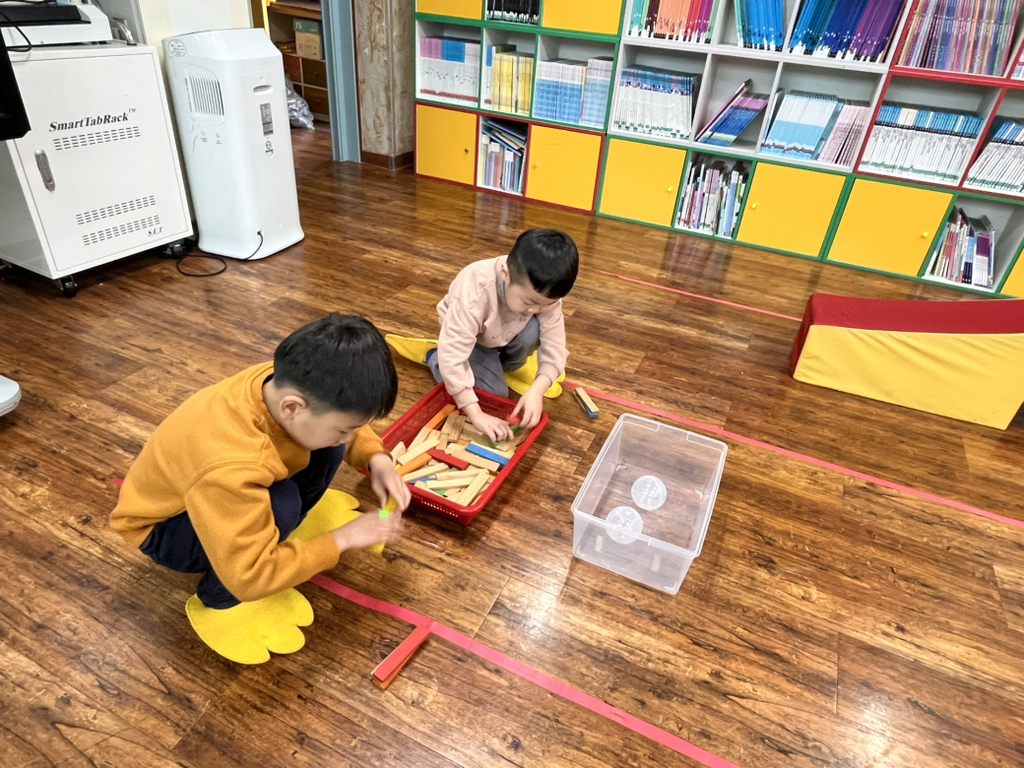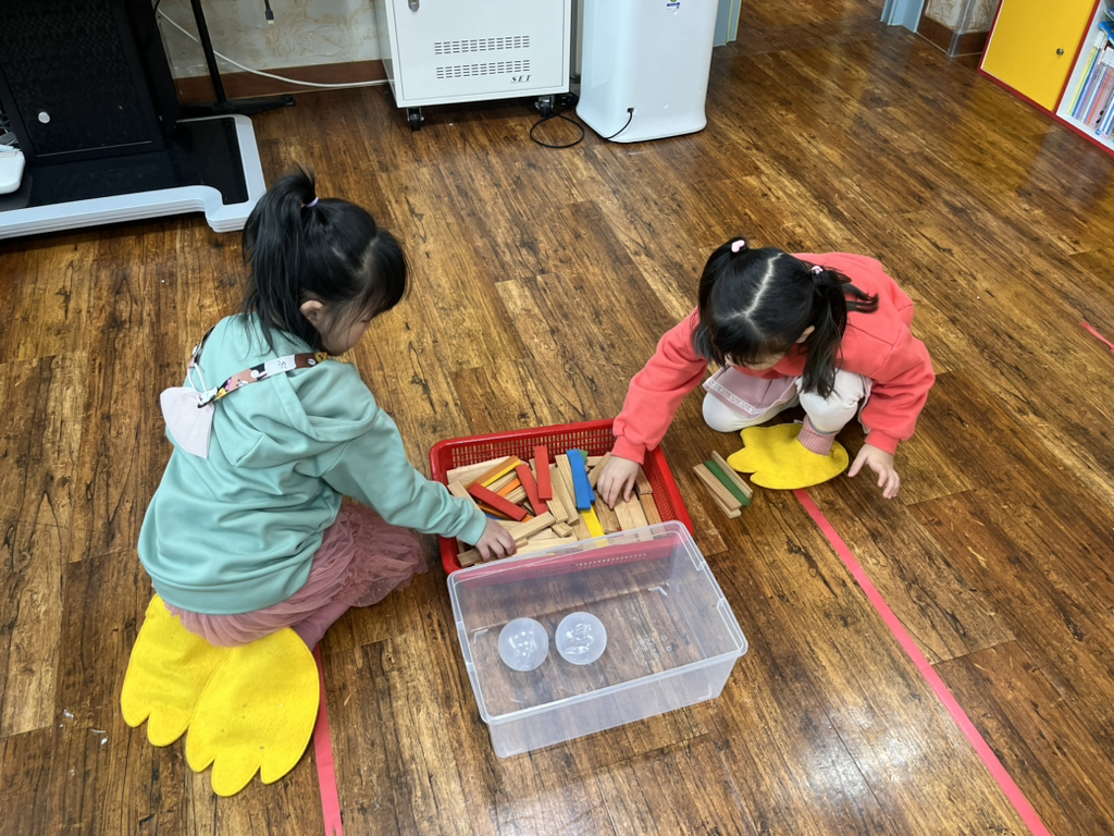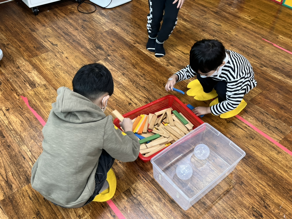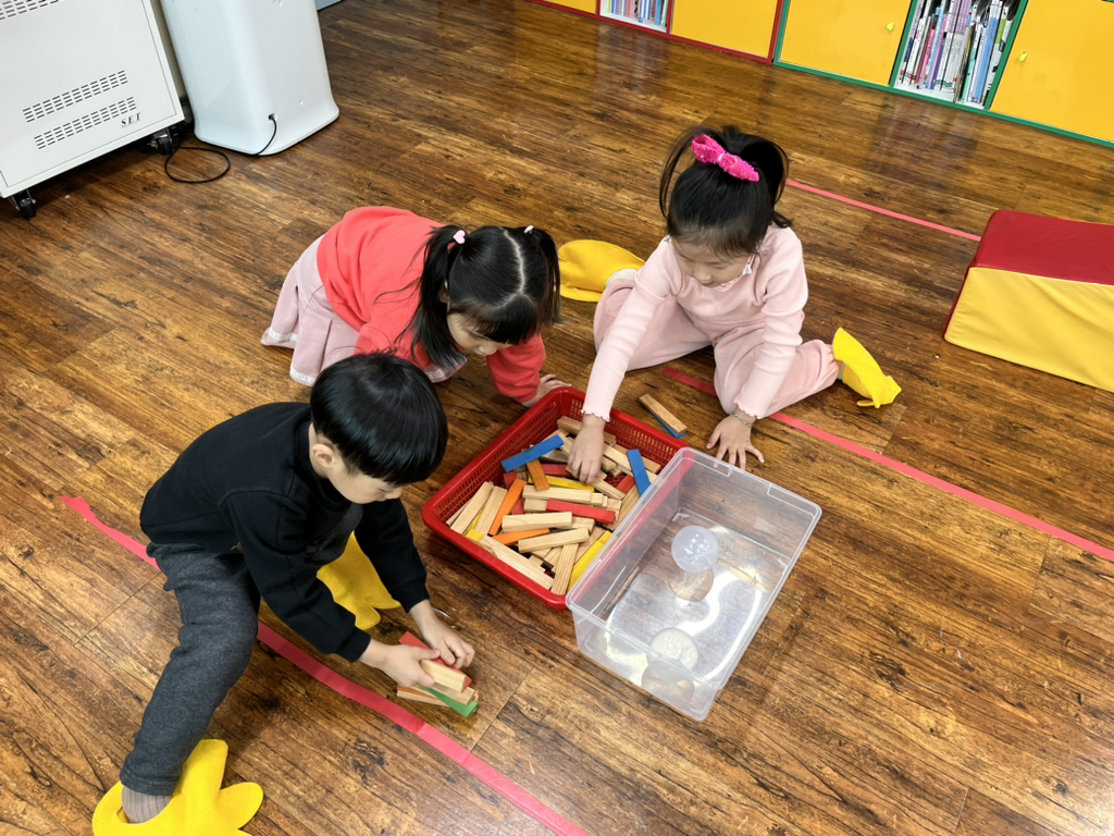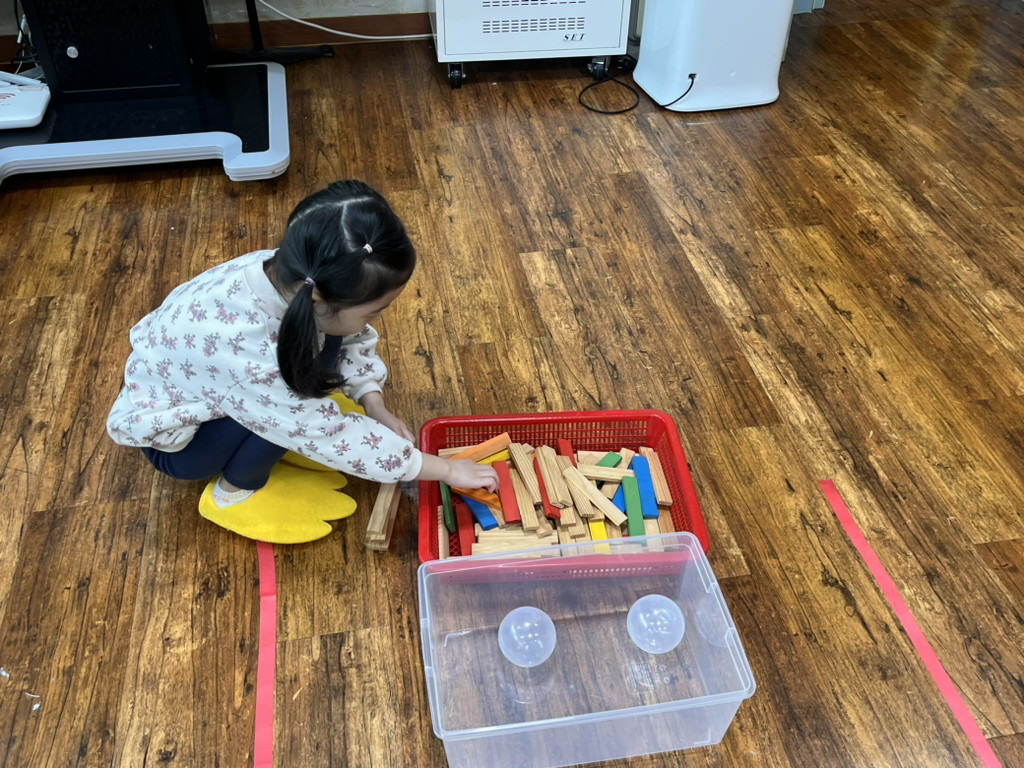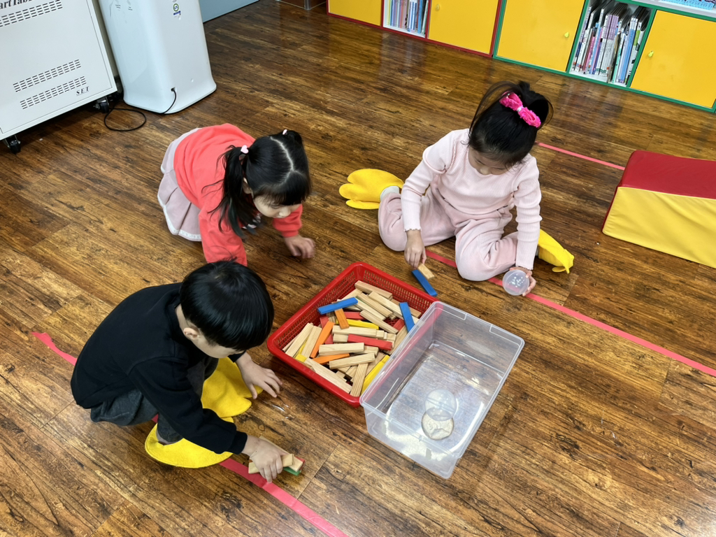 나무 블록을 천천히 쌓아보며 숫자를 세보기도 하였지요