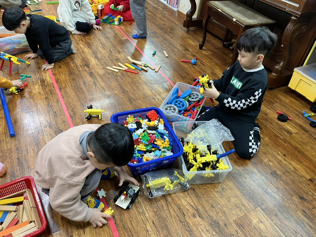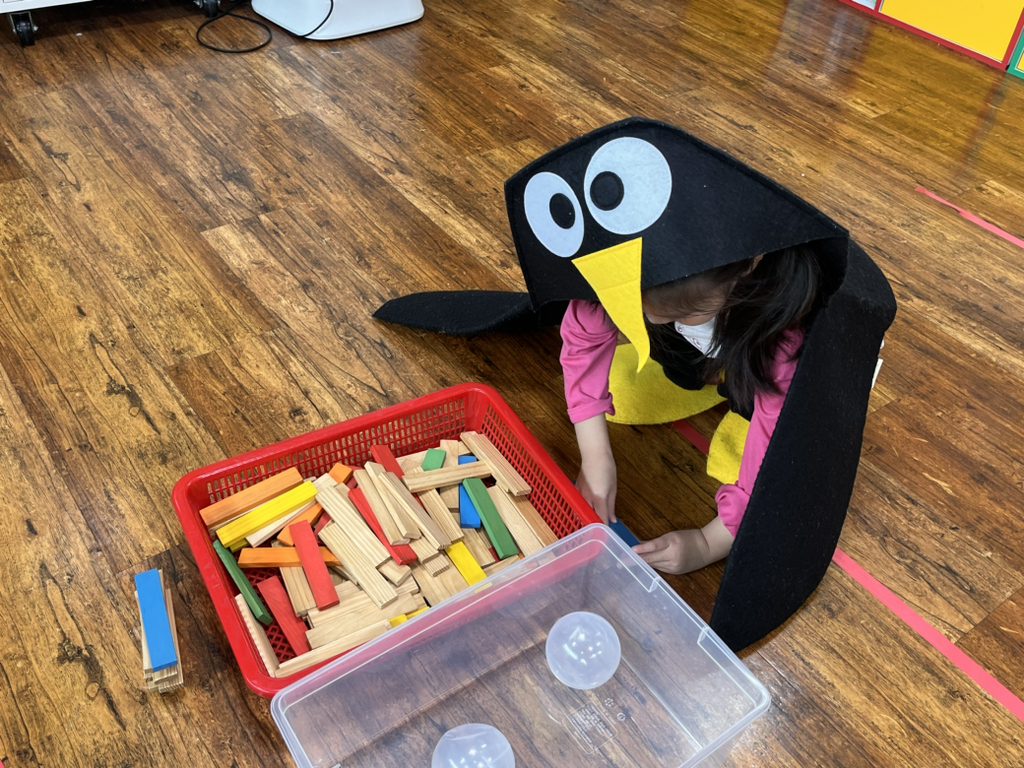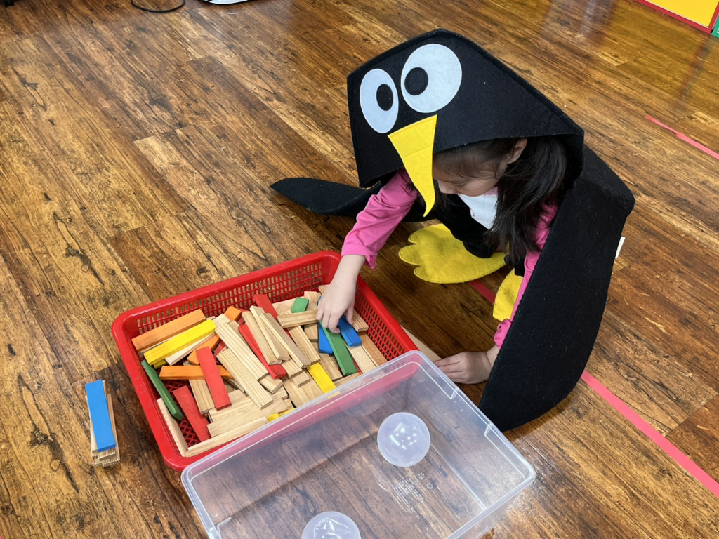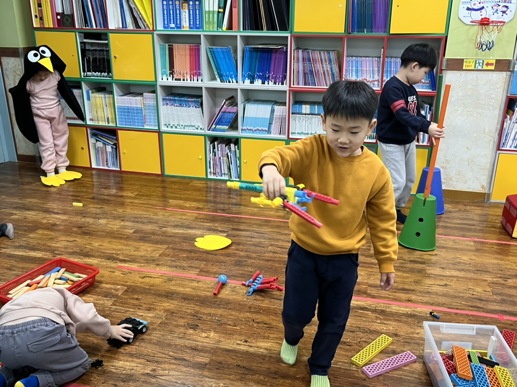북극을 꾸며보며 북극 곰, 북극 여우, 북극 토끼 등 북극 동물들에 대해 이야기를 나누다가 “근데 펭귄은 왜 없어요?!” 하며 물어보던 친구들 펭귄은 북극이 아닌 남극에 살고 있대요 ! 펭귄은 뒤뚱뒤뚱 걷는다며 따라해보던 슬기들과 뒤뚱 뒤뚱 펭귄 게임을 해보았어요 !
