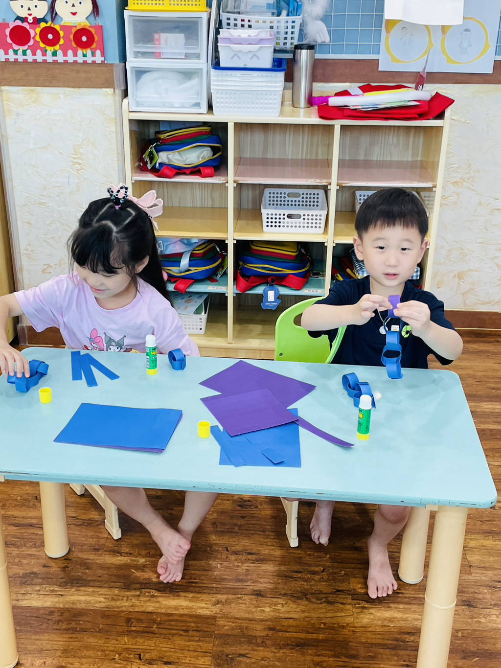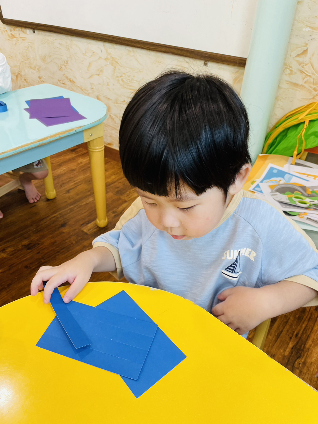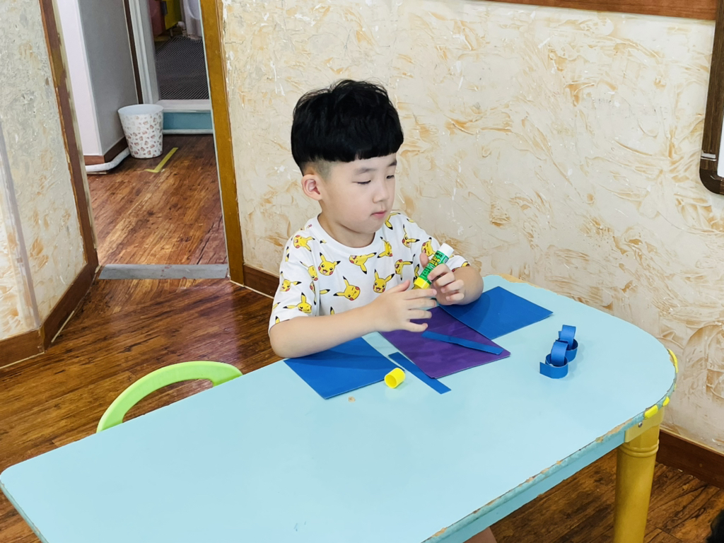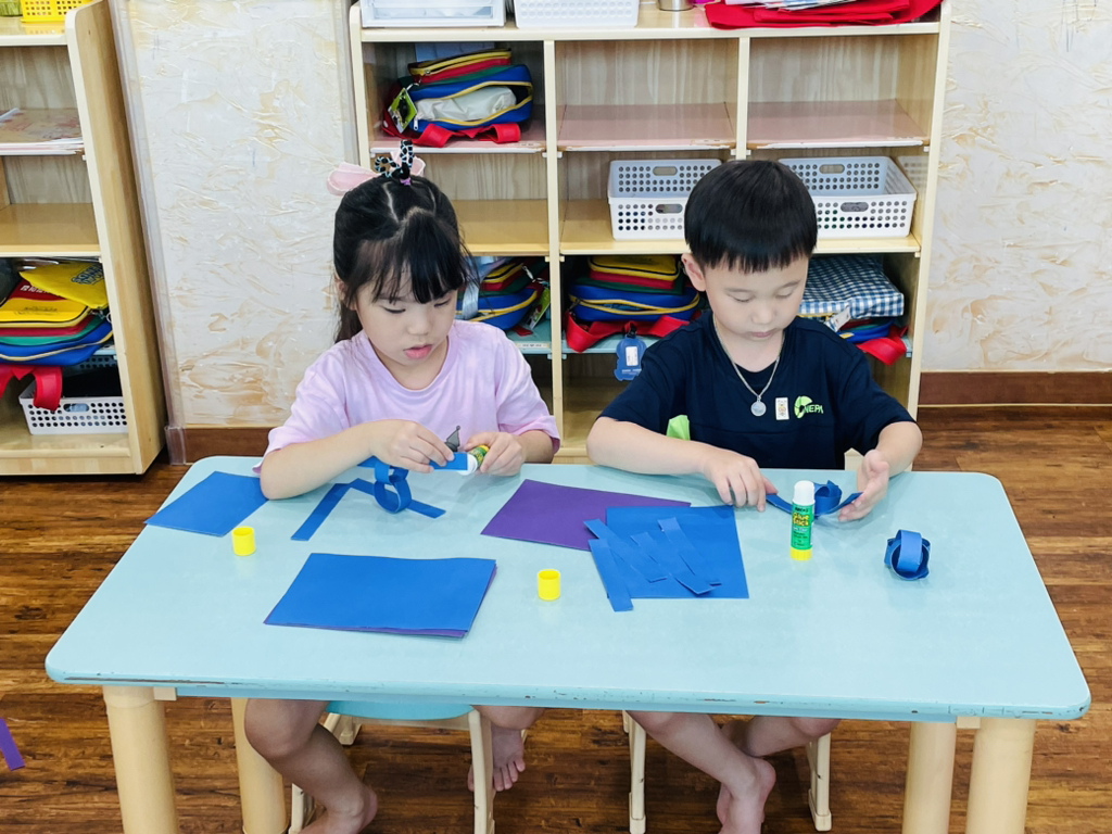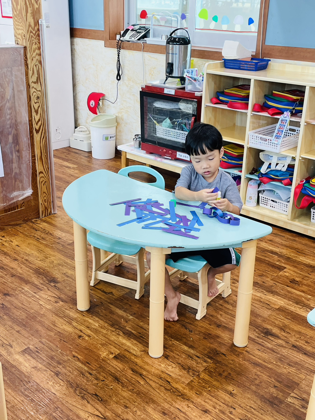 긴 종이를 동글 동글하게 붙여 연결하는게 쉽지 않았지만 차근 차근, 하나씩 하나씩 연결해 해파리의 긴 다리를 만들었어요😀