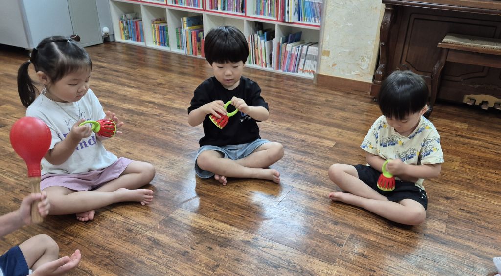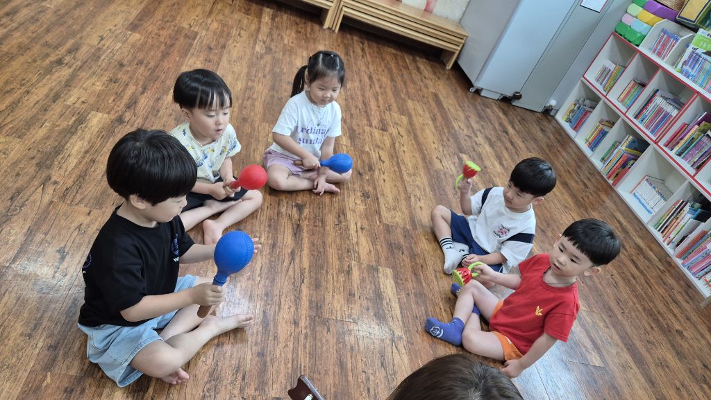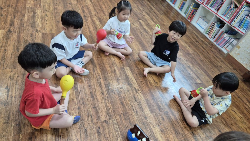 오르프 시간에 원숭이 오 형제의 침대 놀이 노래를 동작으로 표현하고, 케이지벨과 마라카스로 연주했어요. 그리고 원숭이 오 형제의 그림 동화를 읽으며 노래를 듣고 불러보았어요.🎶
