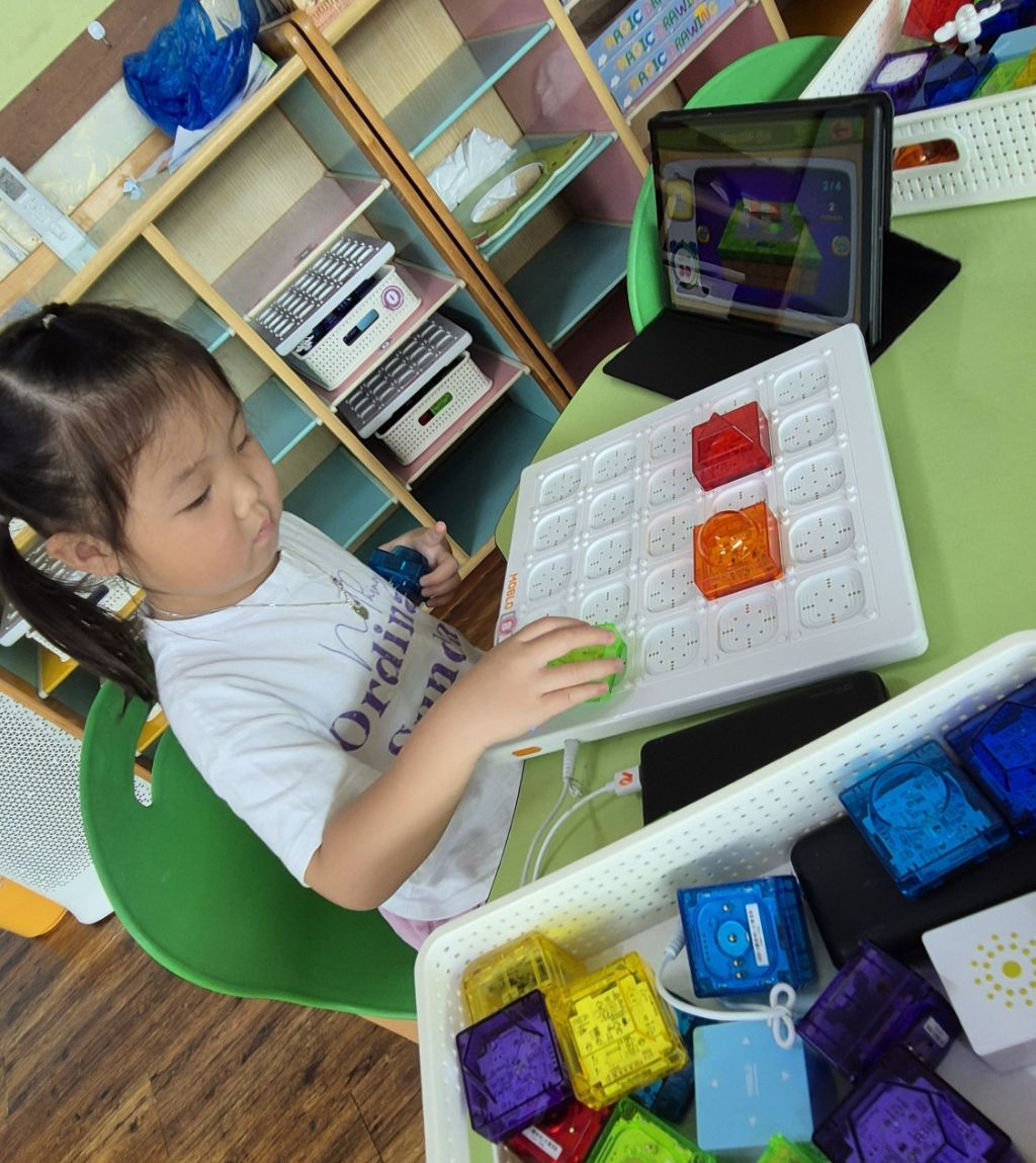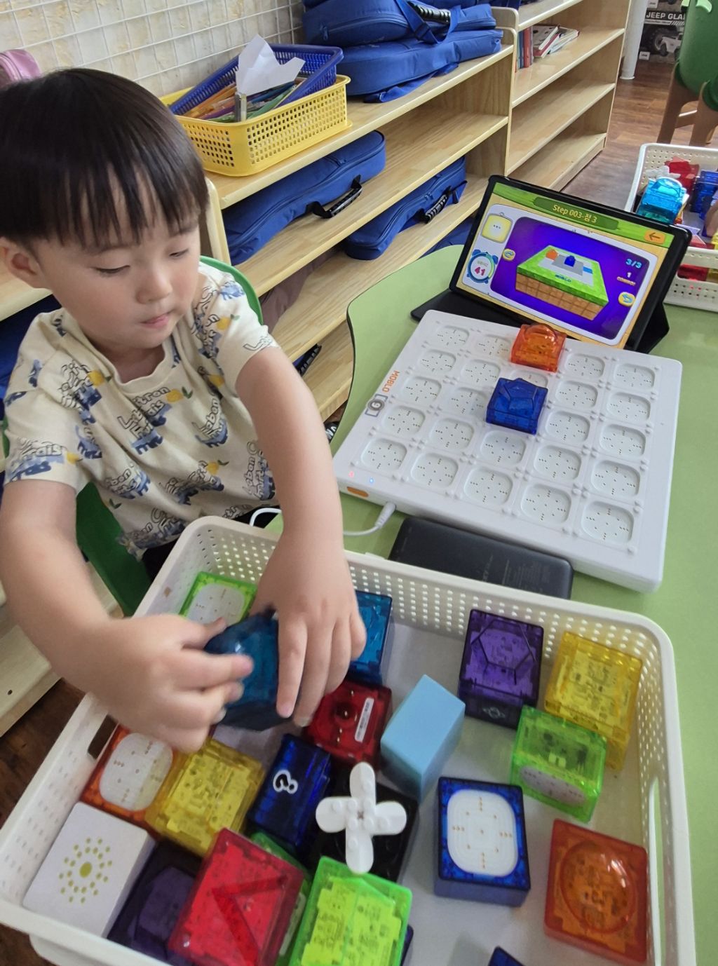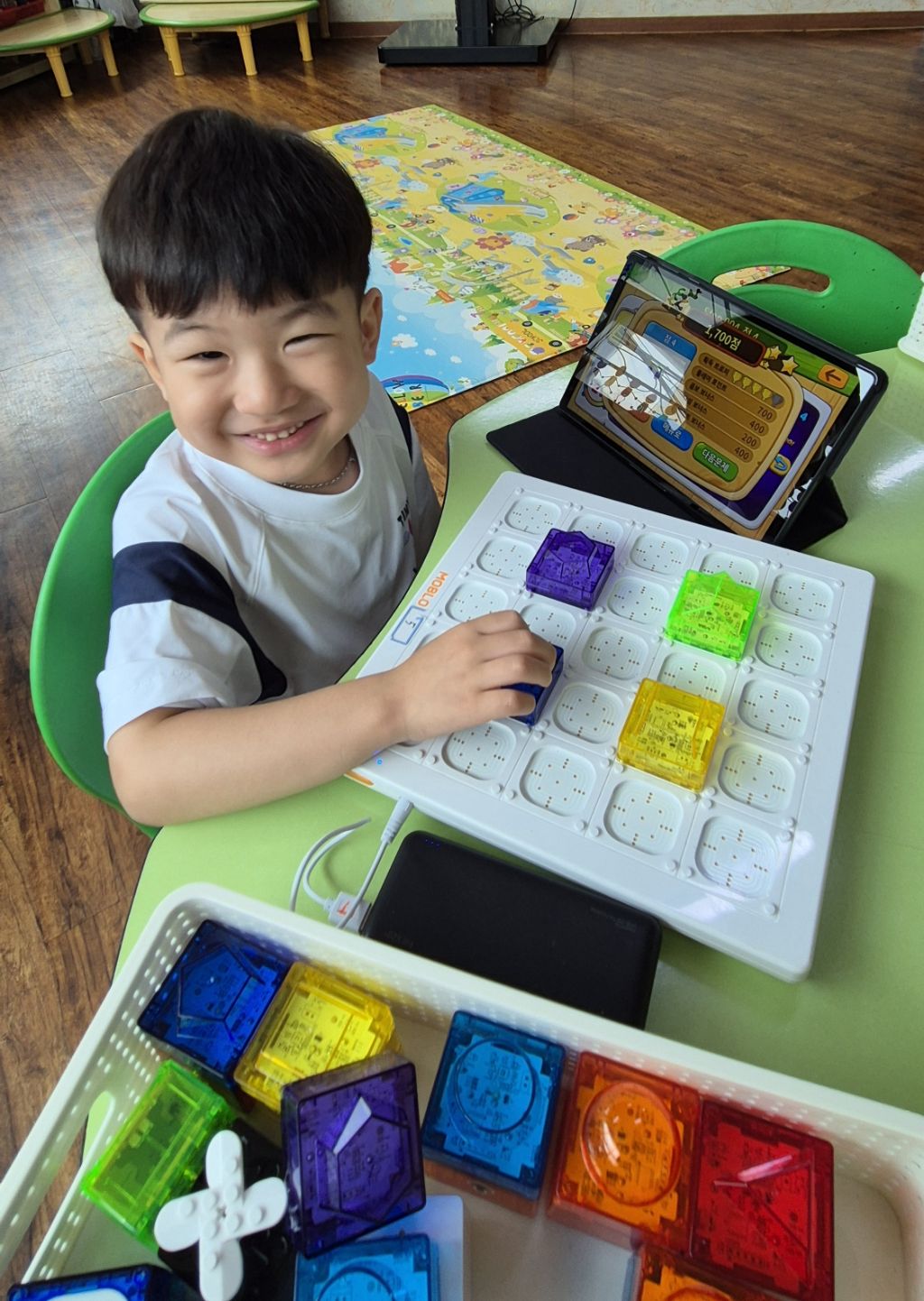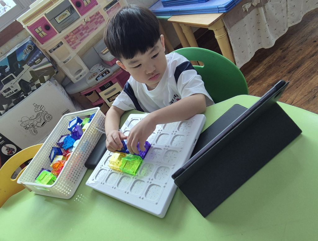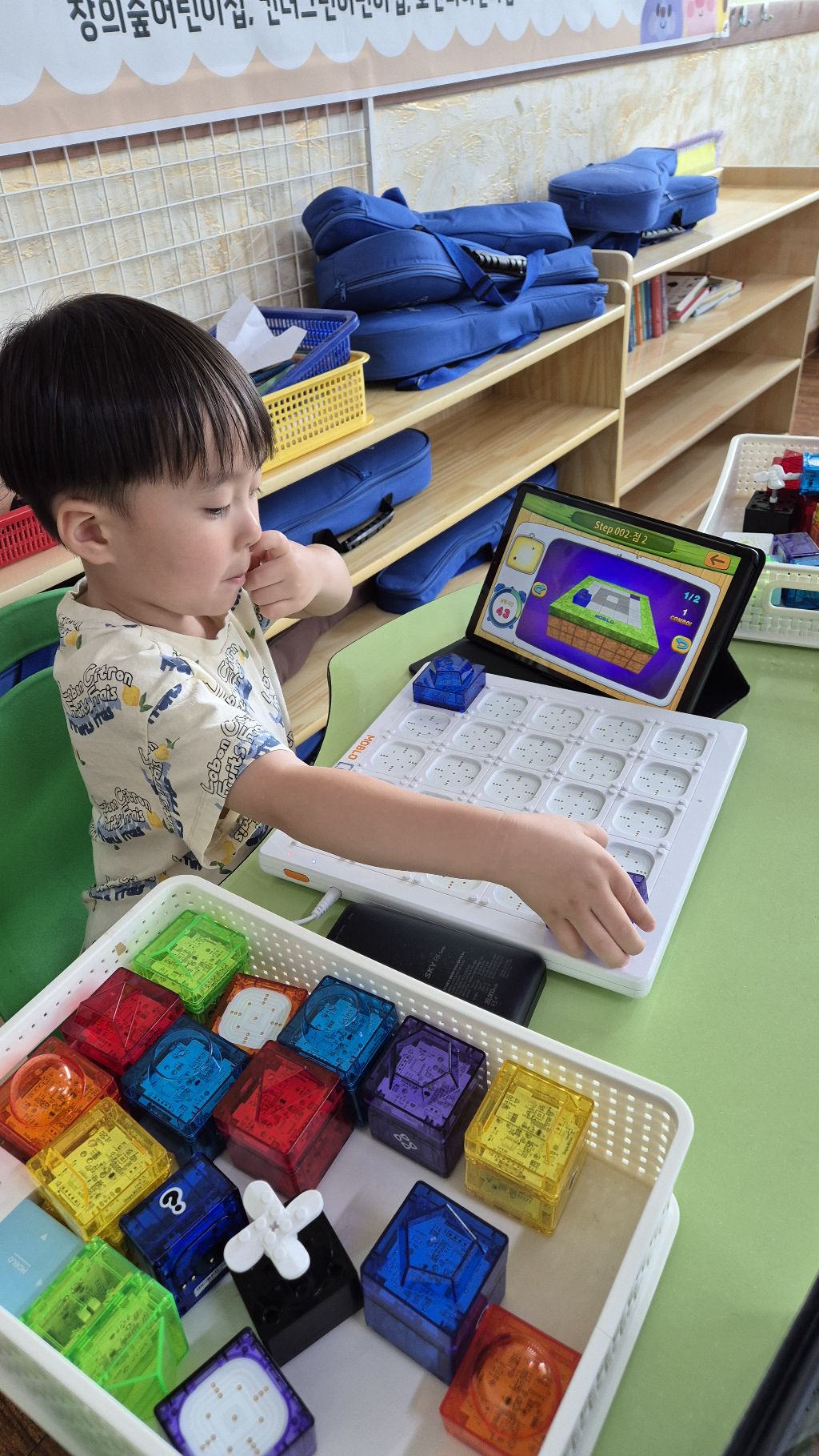 3D 입체 블록의 위치를 확인하고 새 칼을 찾아 꽂아 완성하면서 공간 지각 능력을 높여보았어요.