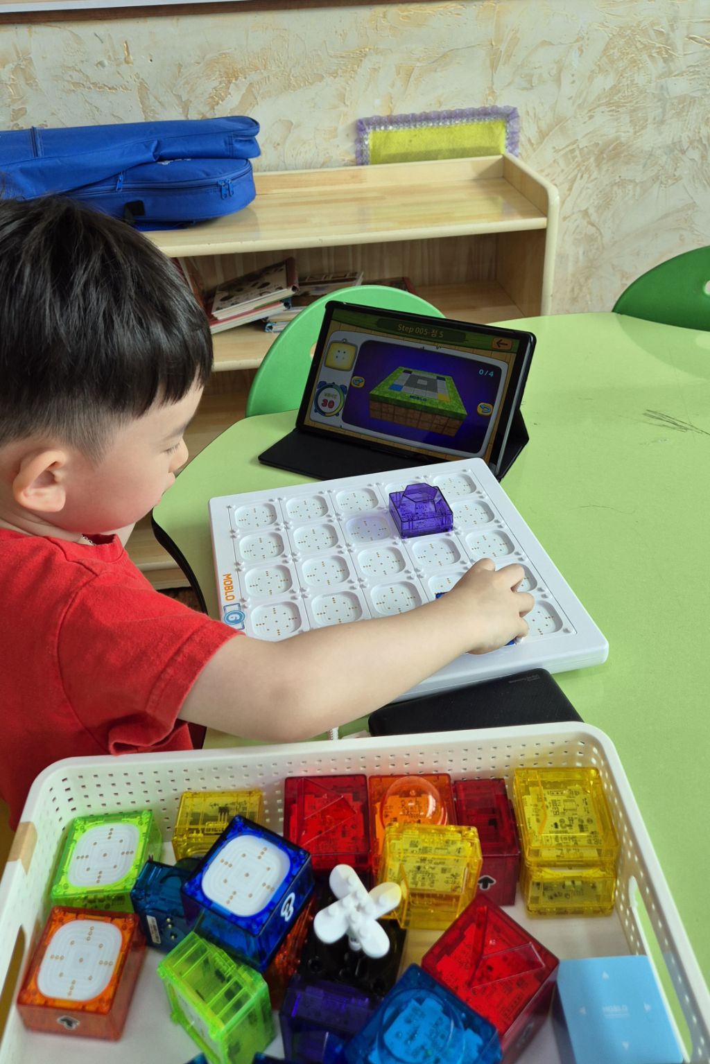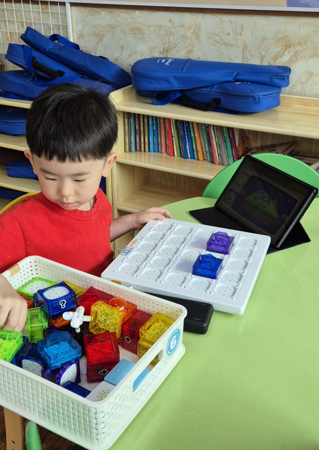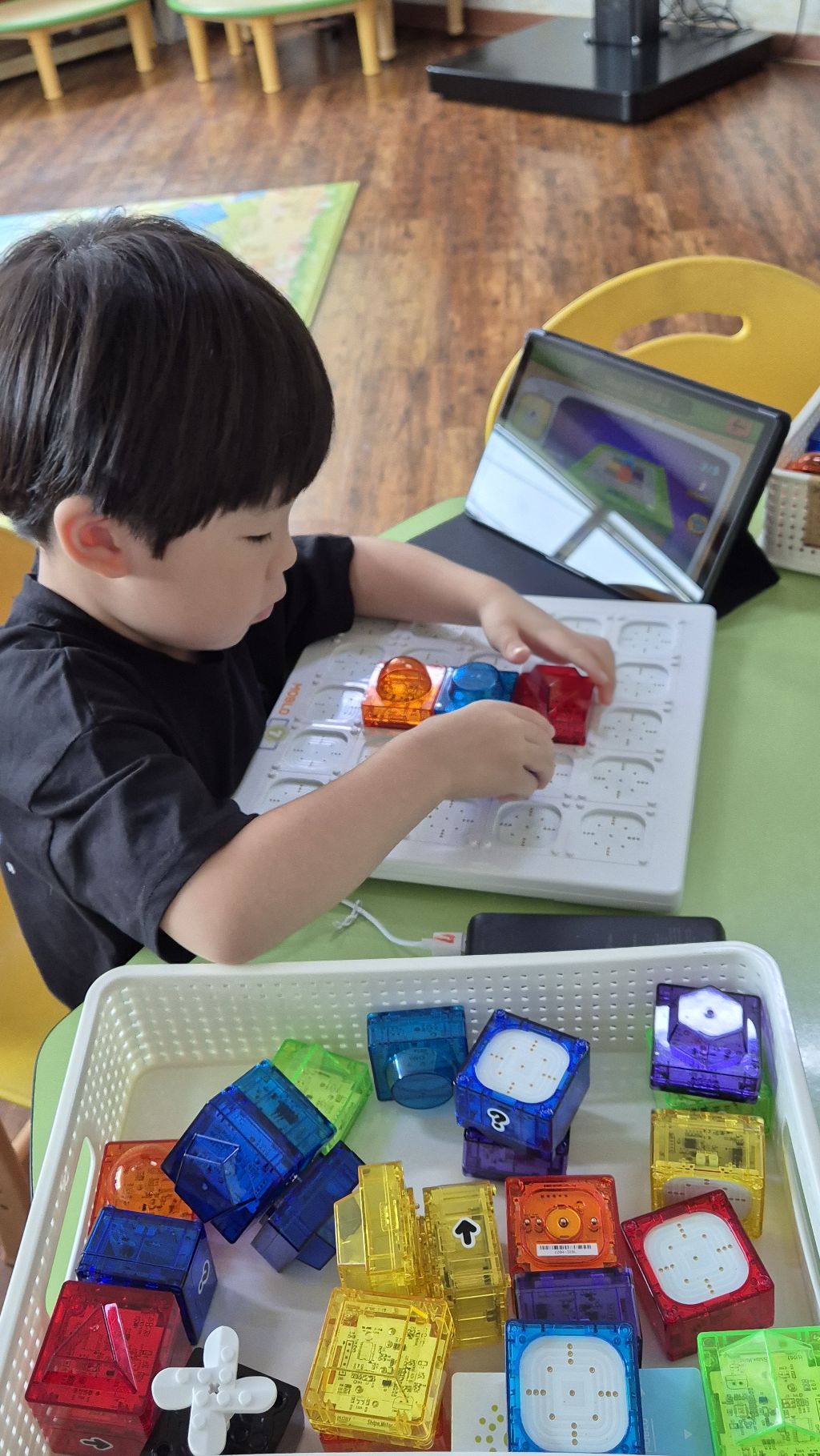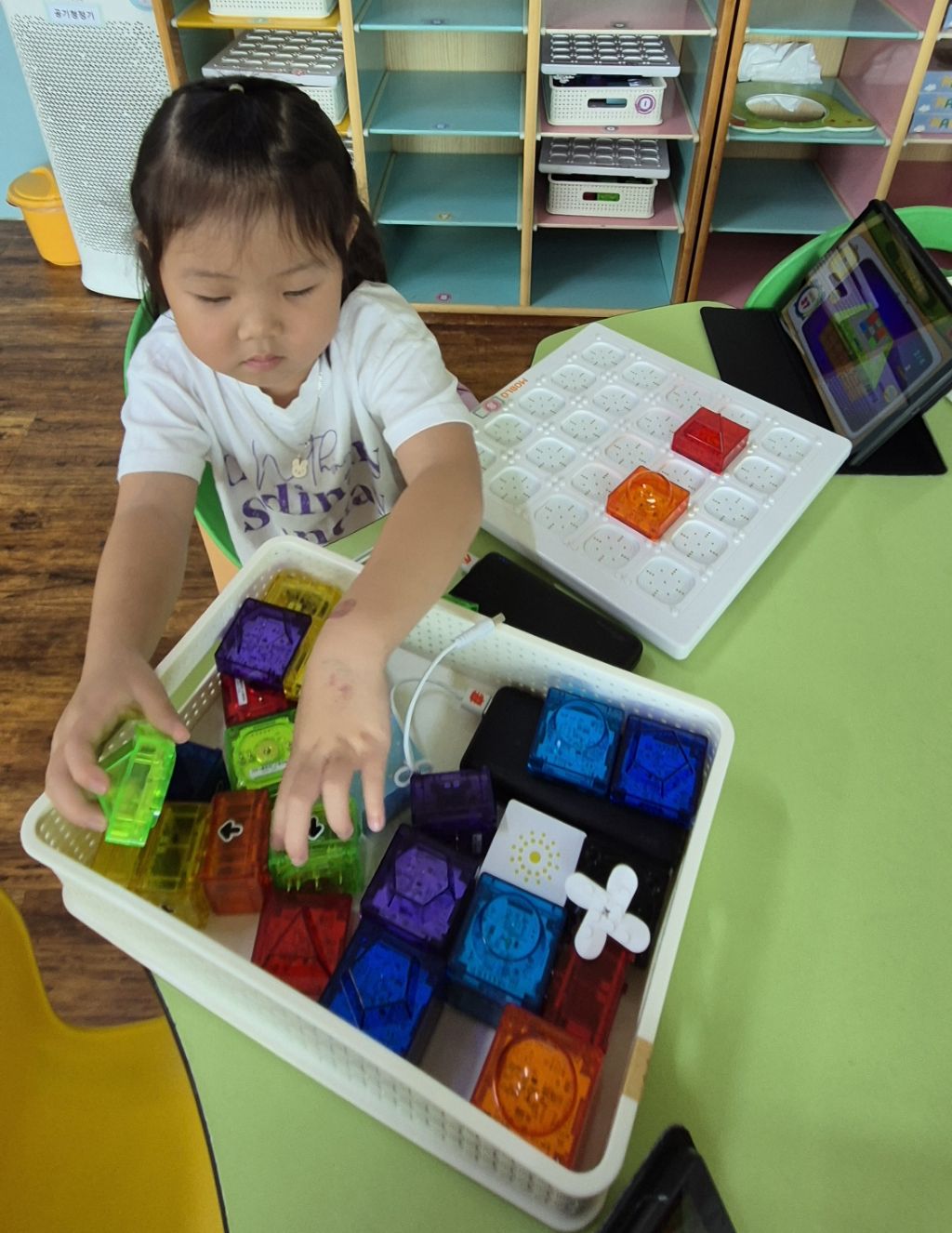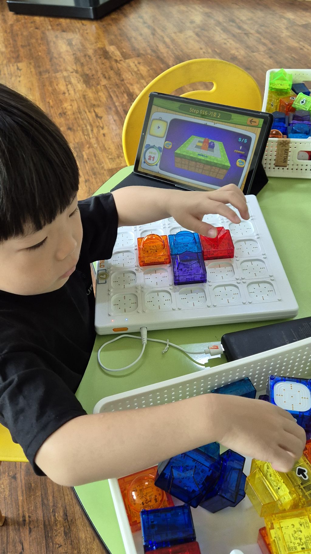 3D 입체 블록의 위치를 확인하고 새 칼을 찾아 꽂아 완성하면서 공간 지각 능력을 높여보았어요.