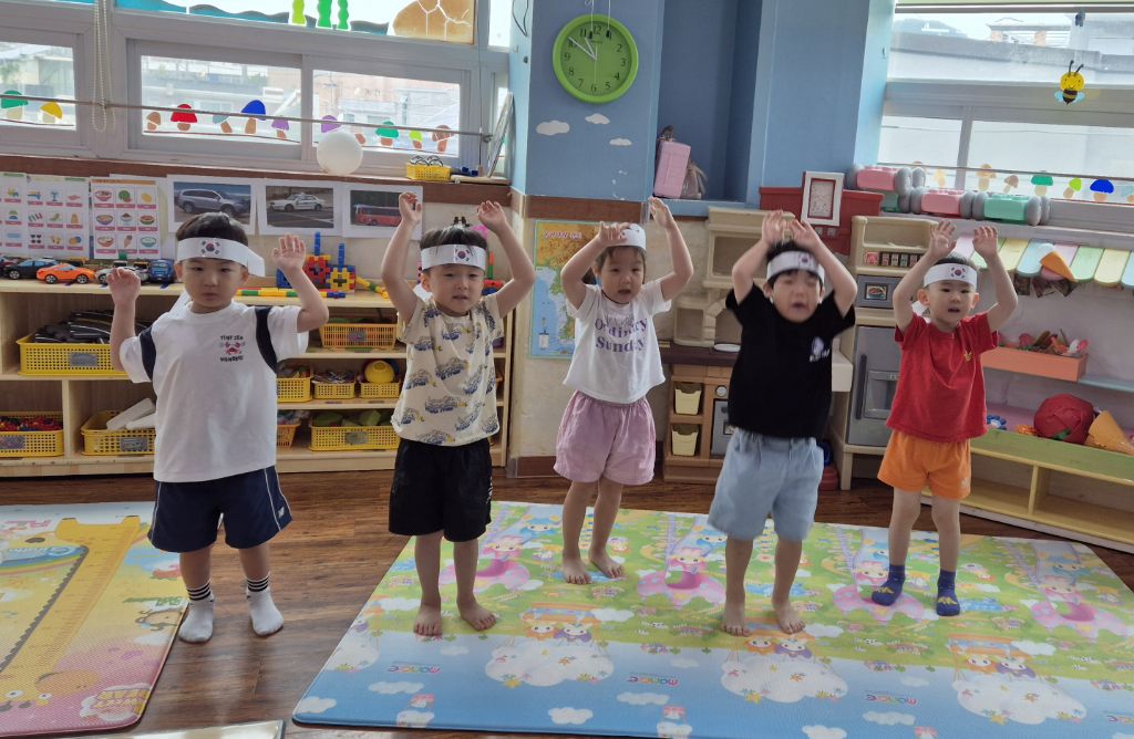 올해가 80주년이 되는 광복절입니다. 우리 행복이들이 광복절 이야기를 들으며 일본에 나라를 빼앗겼다고 하니 모두 심각한 표정으로 집중해서 이야기를 들었어요. 그러면서 독립투사 이야기도 들었지요. 그리고는 광복절이 너무 좋은 날이라고 하며 "대한 독립 만세"를 외쳐보았어요.