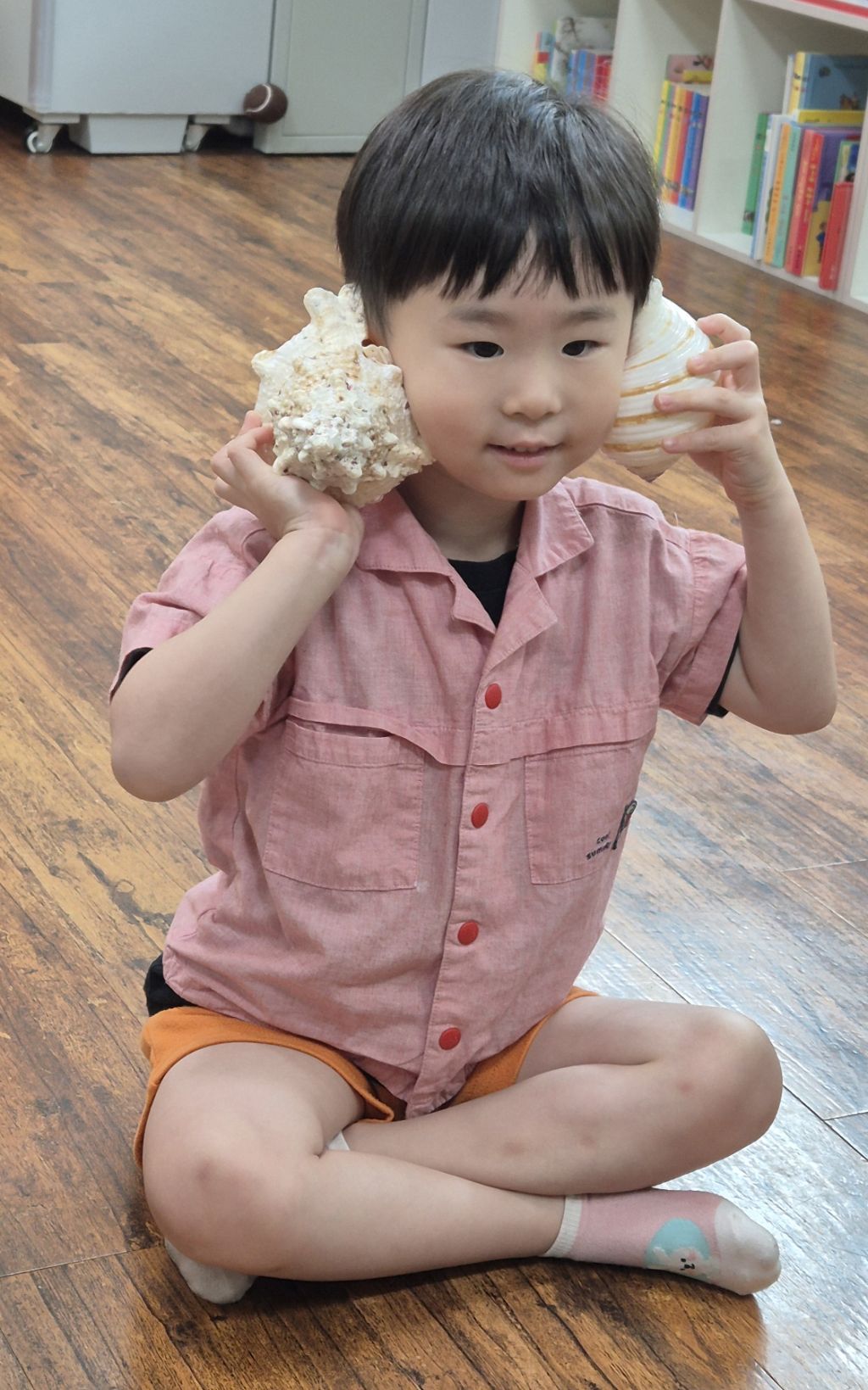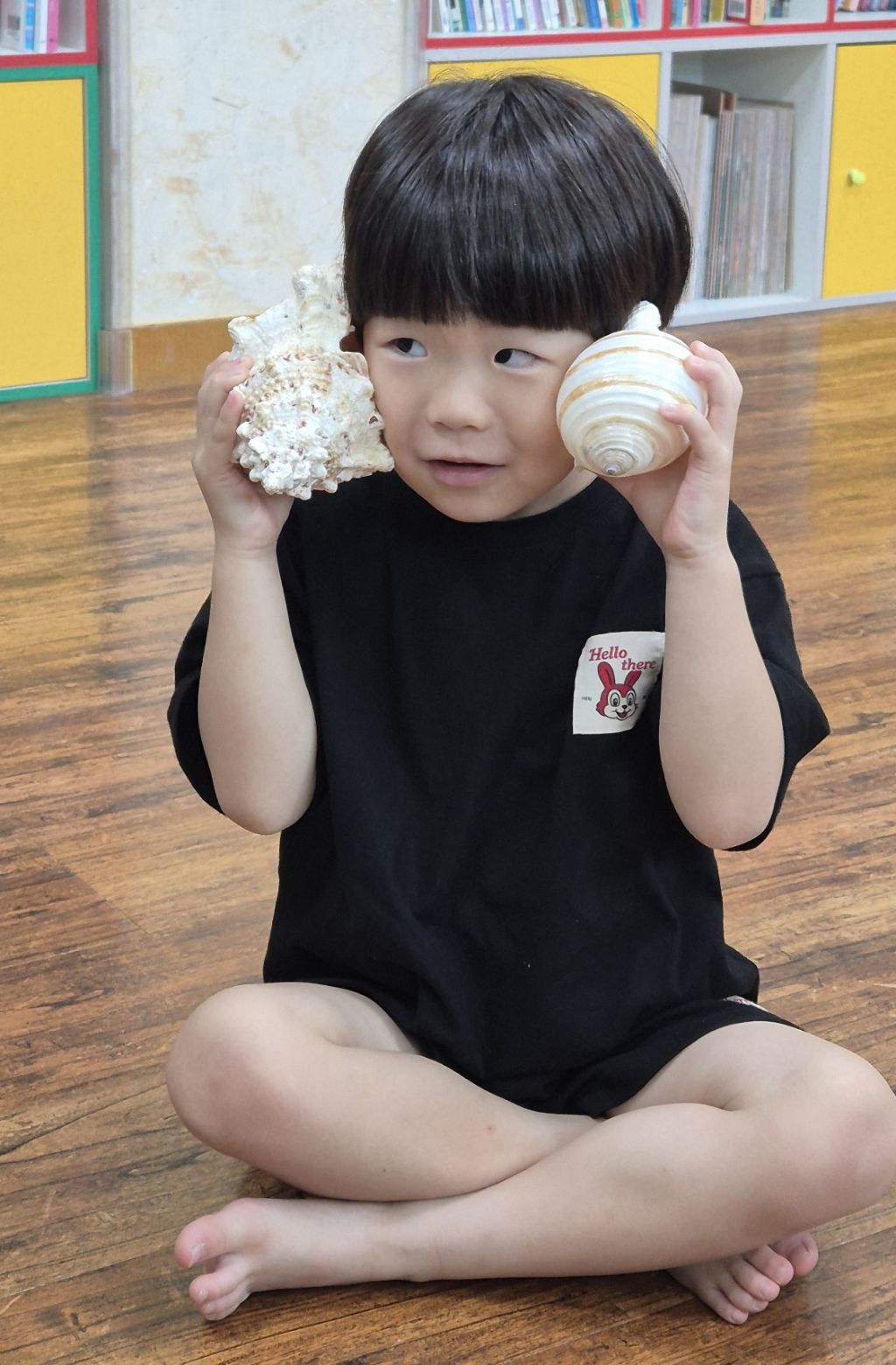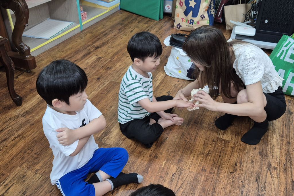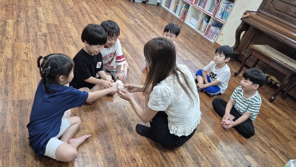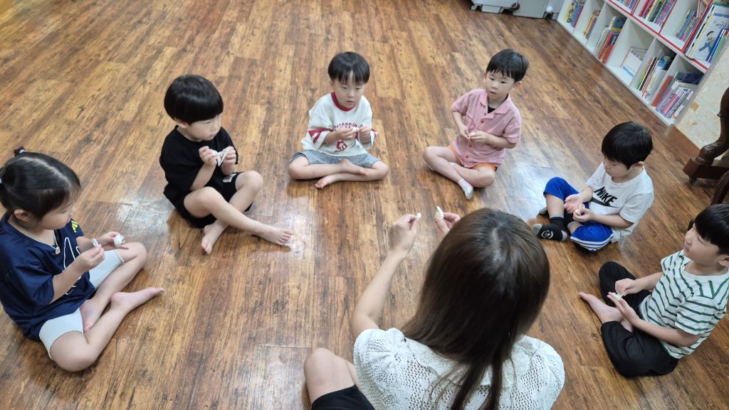 * 오르프 시간에 소라의 소리를 들어보고, 손으로 질감을 만져 보며 탐색하고, 소라 노래를 불러보며 몸으로 표현하고, 소라를 두드리며 소라 노래를 불렀어요. 하와이어로 소라를 '푸우'라고 한대요.