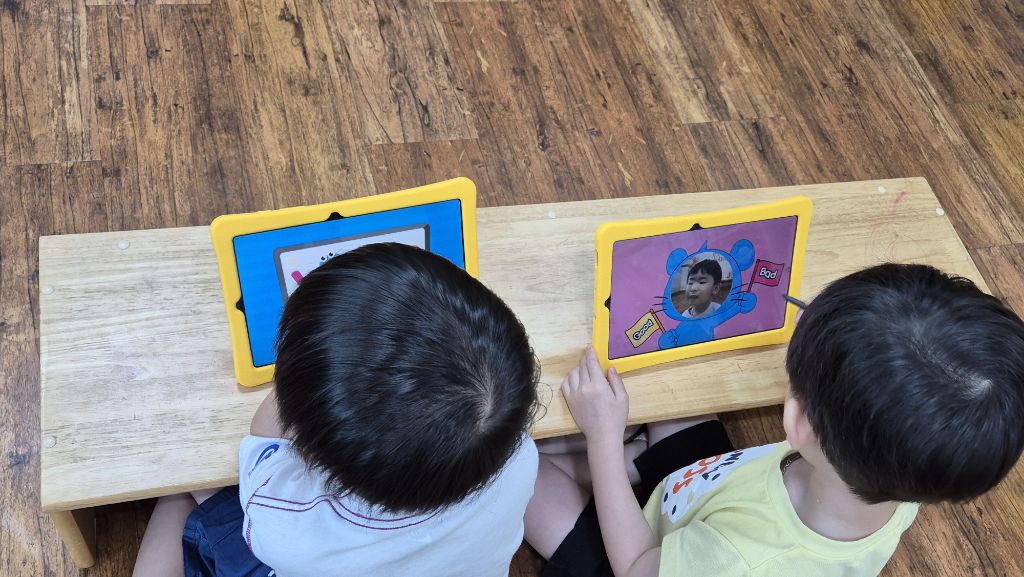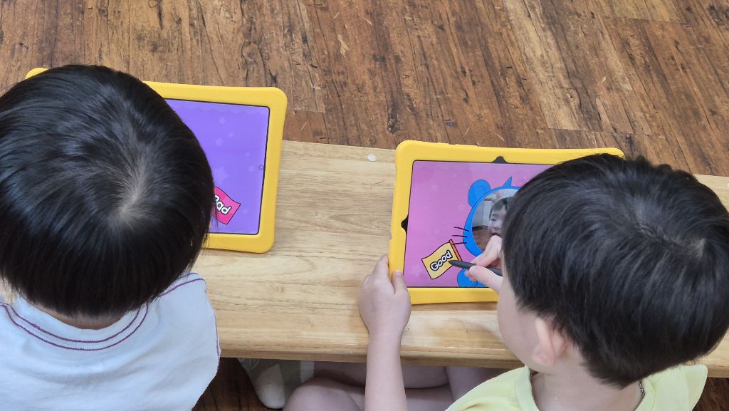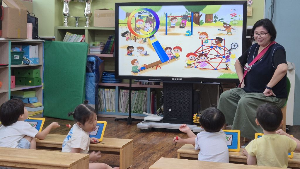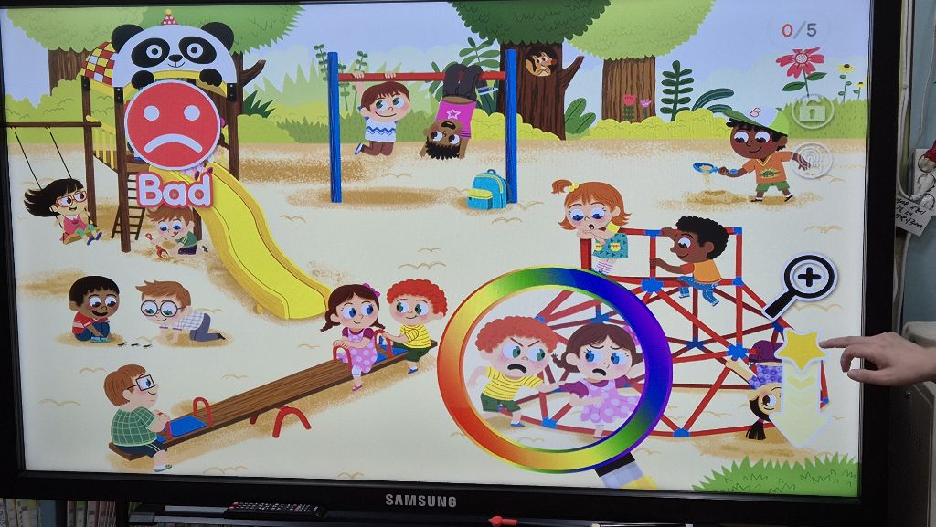영어 시간에 놀이터에서 바른 행동을 찾아보고 good을 선택하고, 바르지 않은 행동을 한 것을 찾아 bad를 선택하며 놀이터에서의 바른 행동을 알아보았지요.