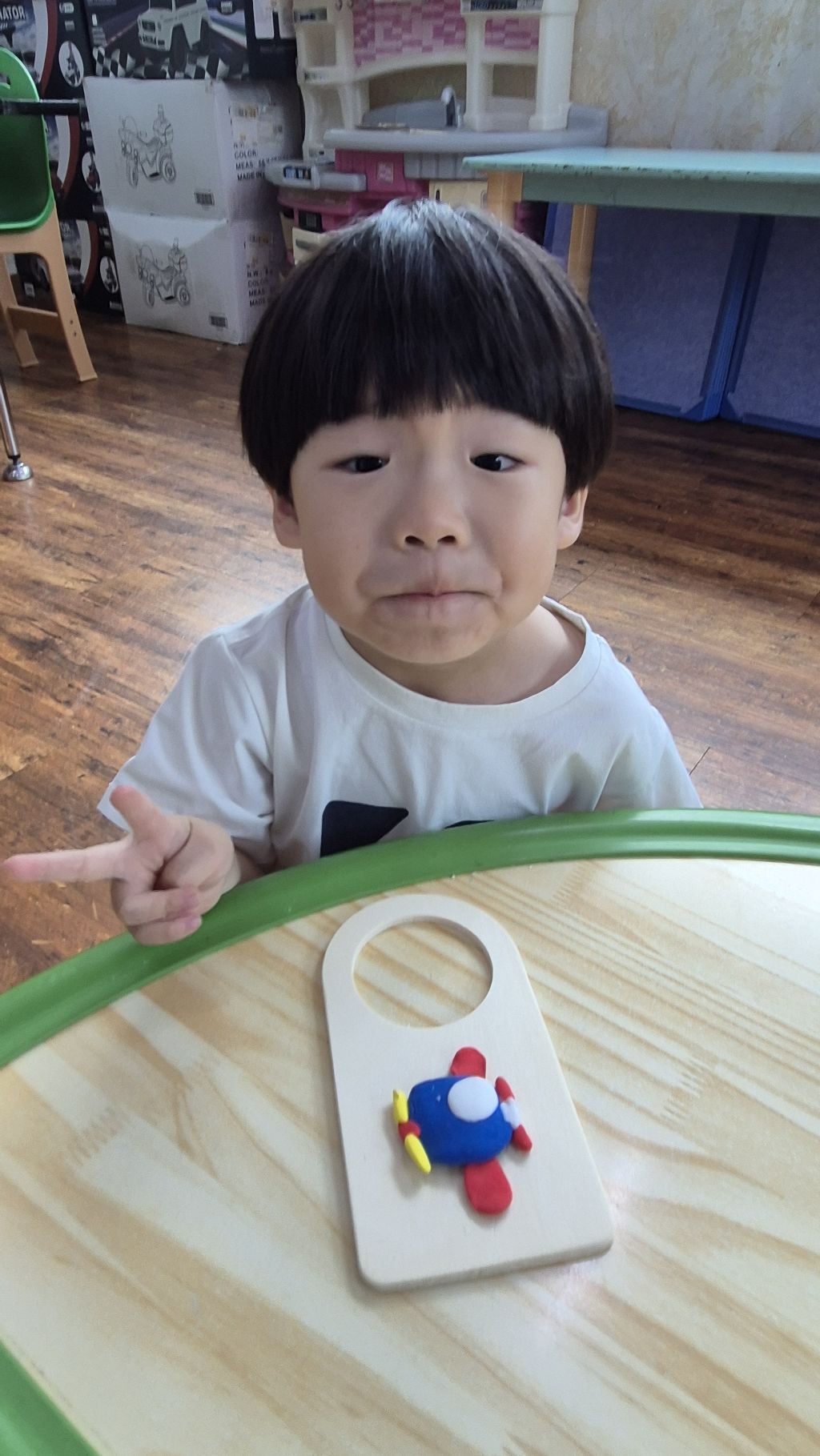 미술 퍼포먼스 시간에 클레이로 손으로 조물조물하며 소근육을 활용해 비행기를 만들어 문고리 안내판을 만들었어요. ✈️ 🛩