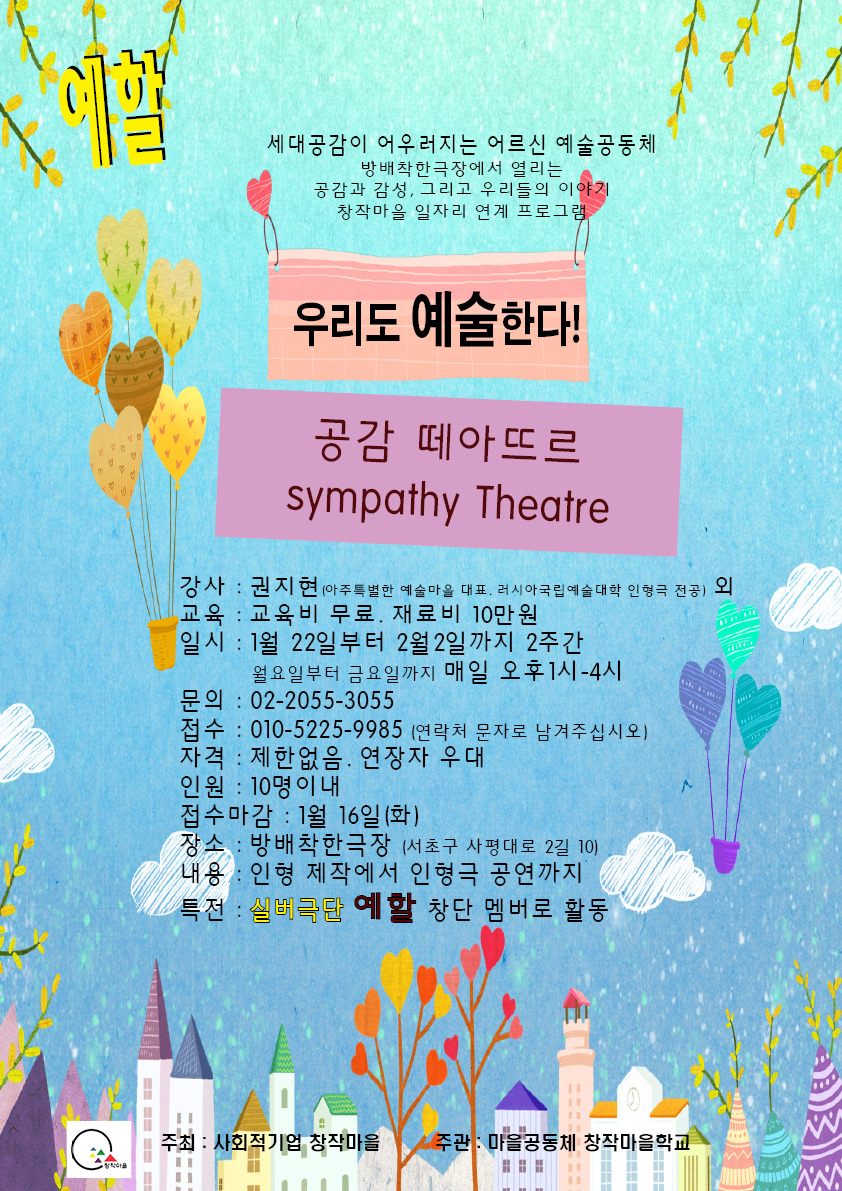 마을공동체 창작마을학교에서 주관하는 일자리연계프로그램이니 적극적인 자세가 필요합니다.