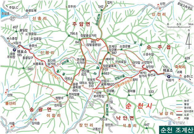 산행지- 선암사-장군봉-장박골정상-주능선-연산봉-굴목재-송광사