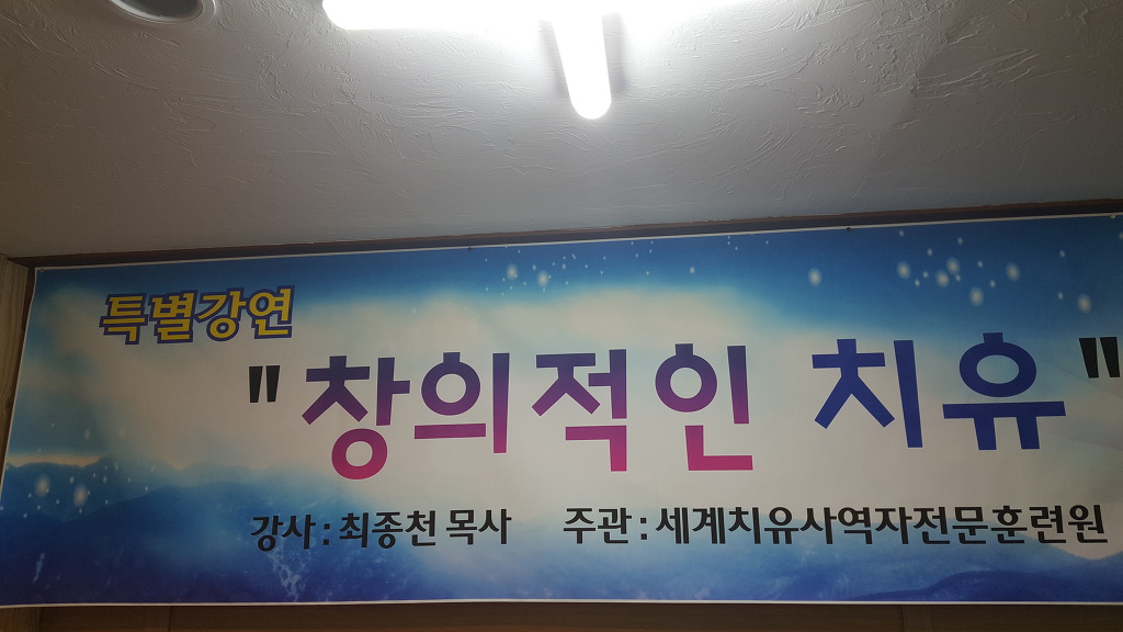 □개념 : 특별강연의 주제는 "창의적인 치유(creative healing)"로 주 그리스도의 복음으로 하나님께 돌아오도록 "하는 의도적인 원래적인 치유(original healing)를 알게 하시는 창의치유와 창의치유사역에 대한 보다 깊이 있는 이해를 다루게 될 것입니다. □ 특별 강의의 의도와 목적 : 이 치유의 원리와 법칙을 깨닫는 창의적인 치유사역의 비밀과 창의치유에 대한 깊은 이해를 도식, 사진, 의학적 이해를 통해 보다 다양한 질병의 원인과 진행과 결과에 대한 창조주 하나님의 비밀이 드러나게 될 것입니다. 또한 질문 및 그룹웍셥을 통해 피드백이 되게 될 것입니다. |