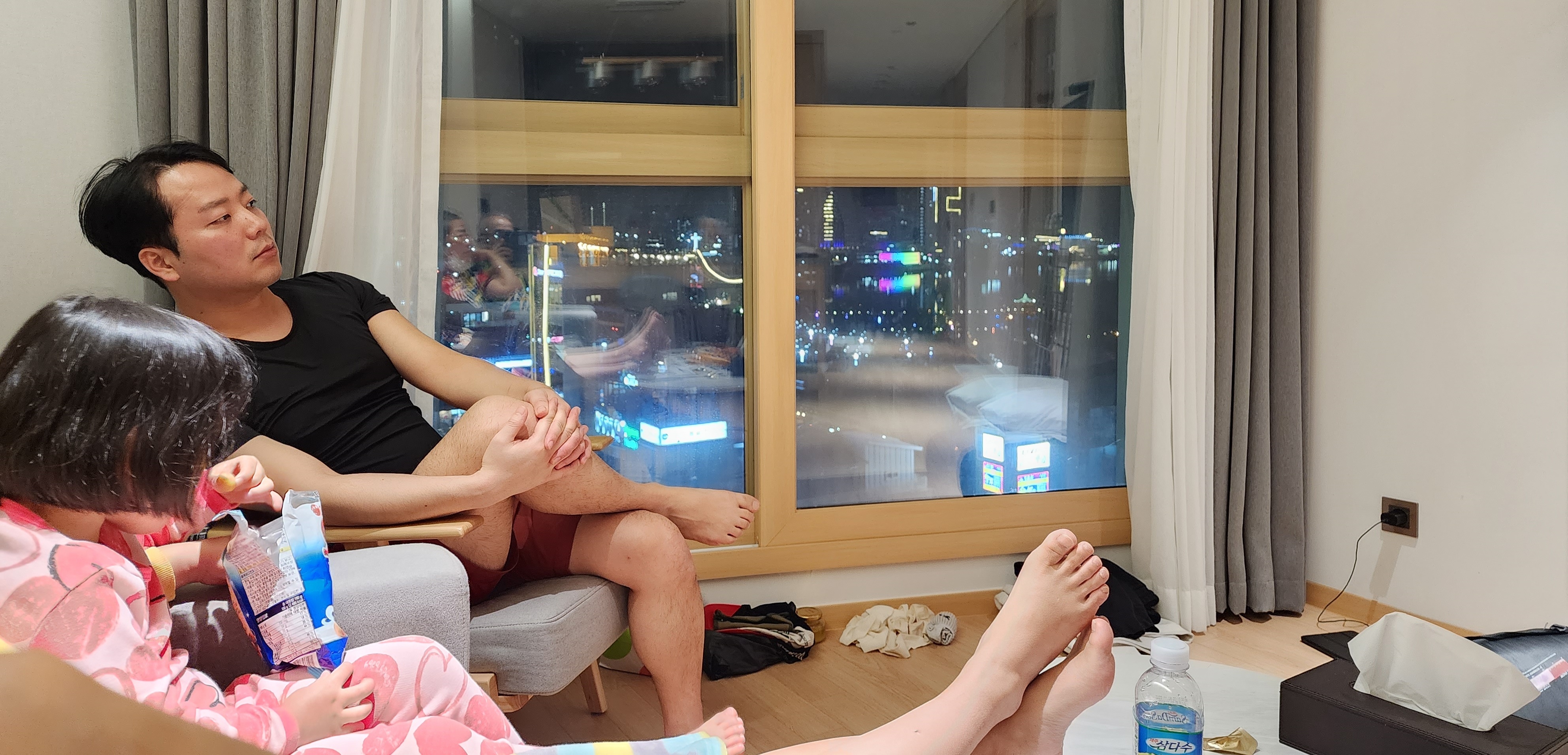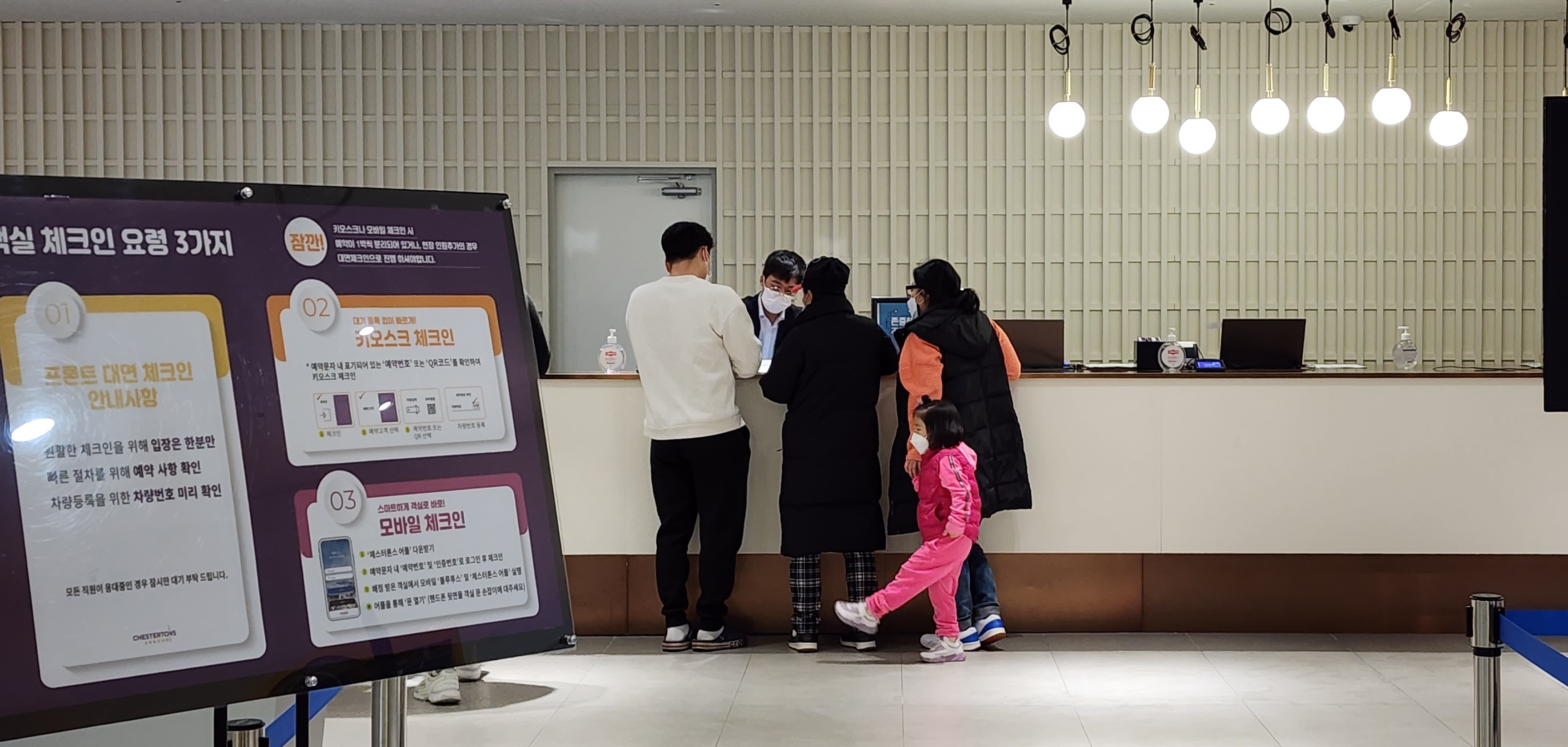 애들이 체스터톤스란 호텔을미리 사전 예약해 놓아