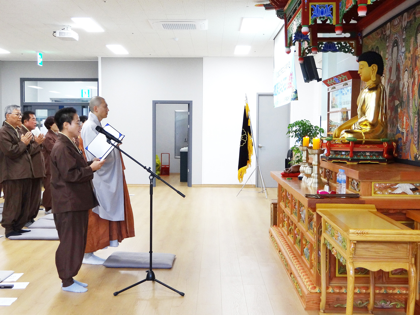 발원문 낭독 원봉 김창래 포교사, 심일경 함미정 포교사