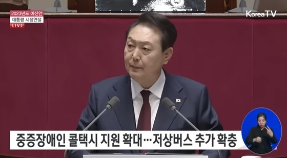 ▲ 윤석열 대통령은 지난 25일 내년도 예산안의 조속한 확정을 위해 국회에 협력을 요청하는 시정연설을 발표했다.ⓒ유튜브 캡쳐