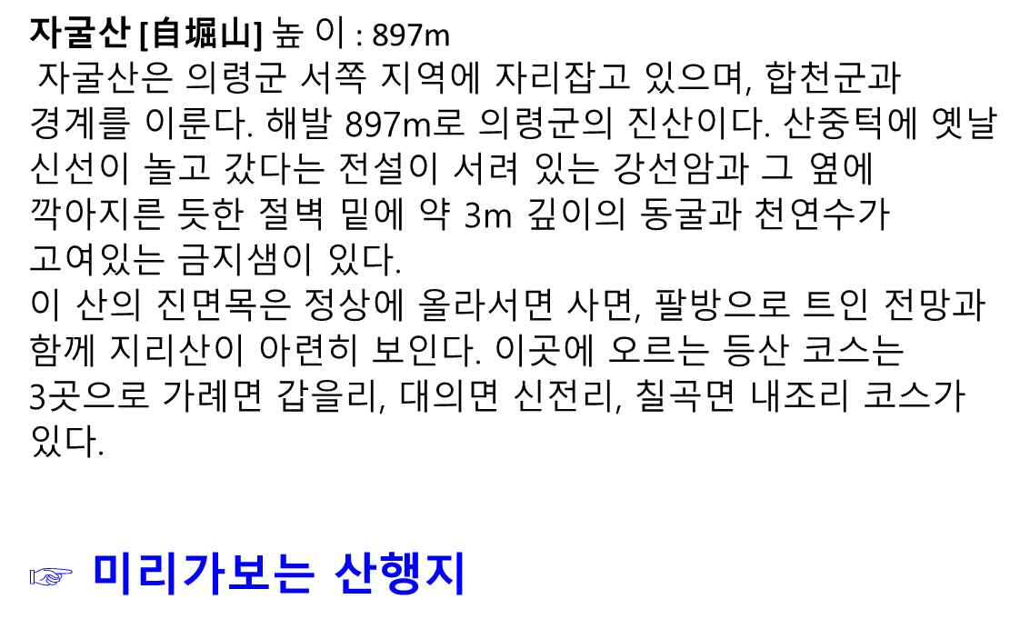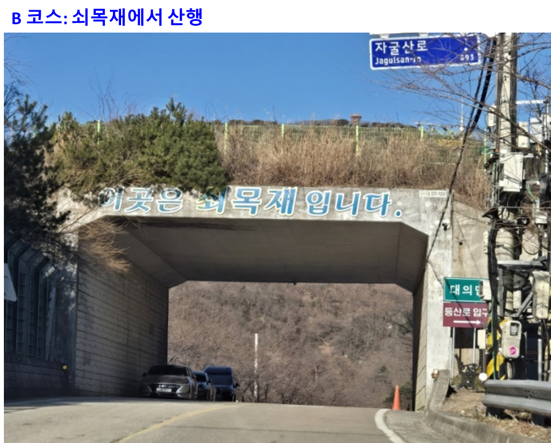B: 쇠목재~쇠목정~둠배먼당~자굴산정상~남명숲길(A코스)