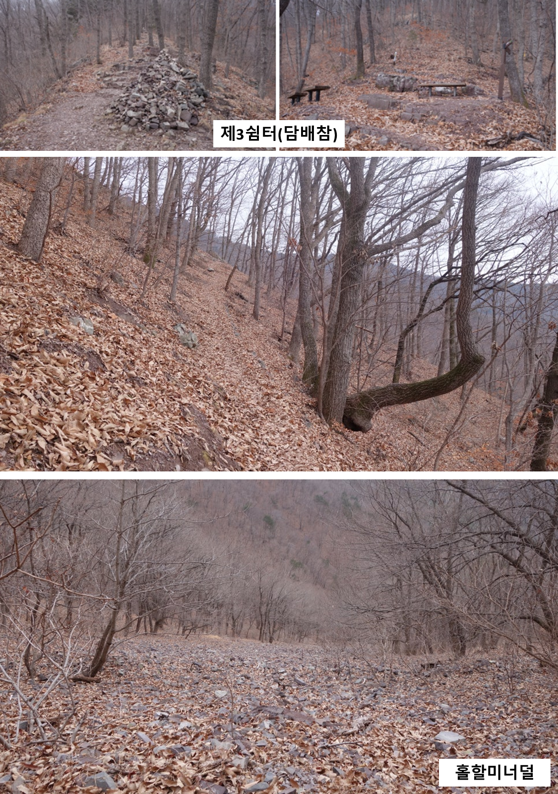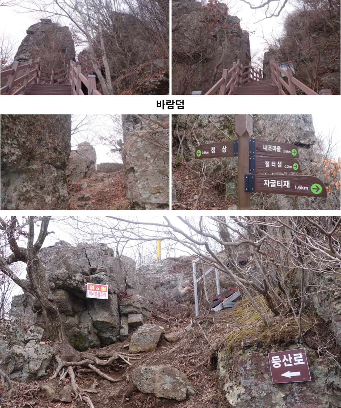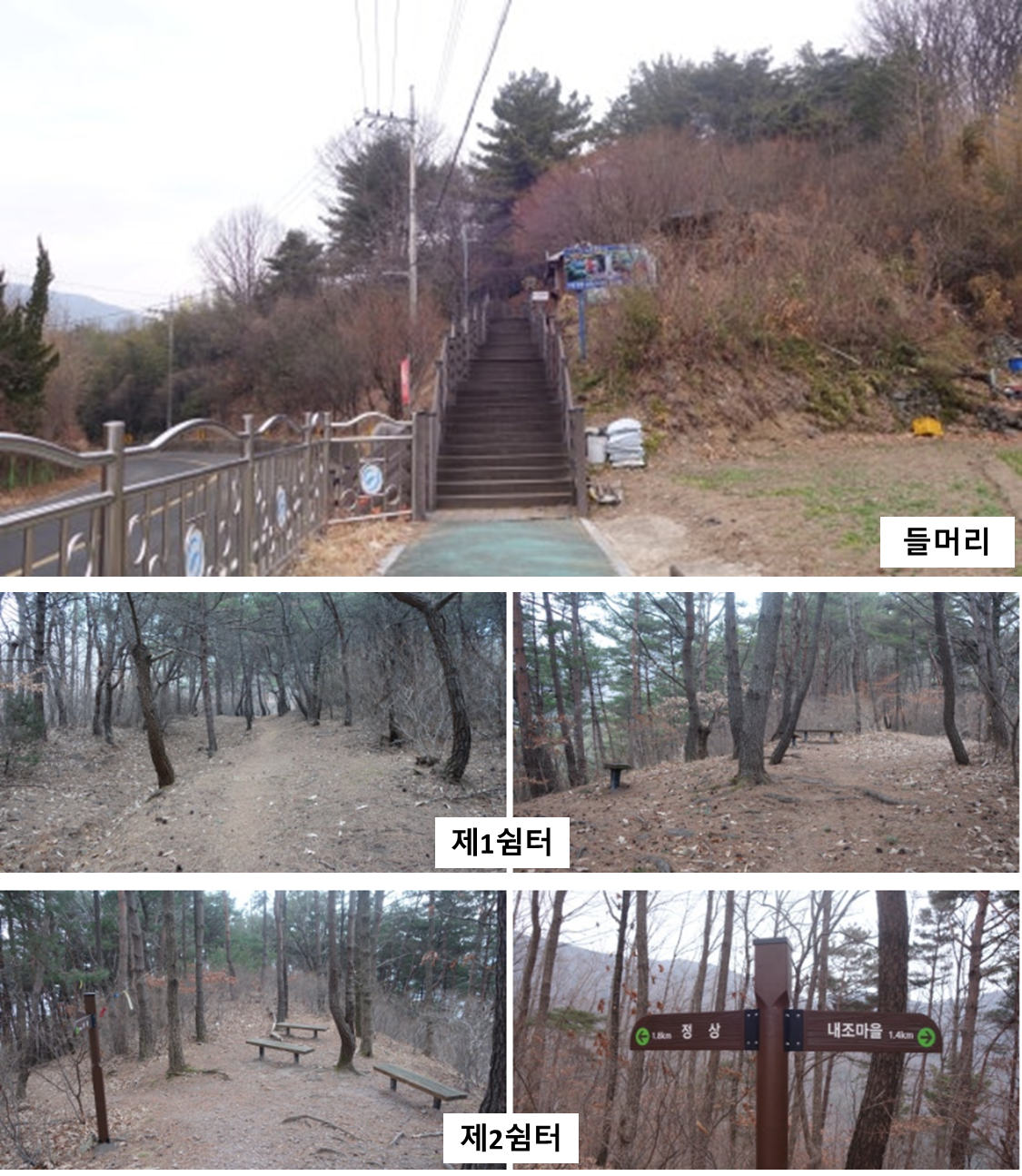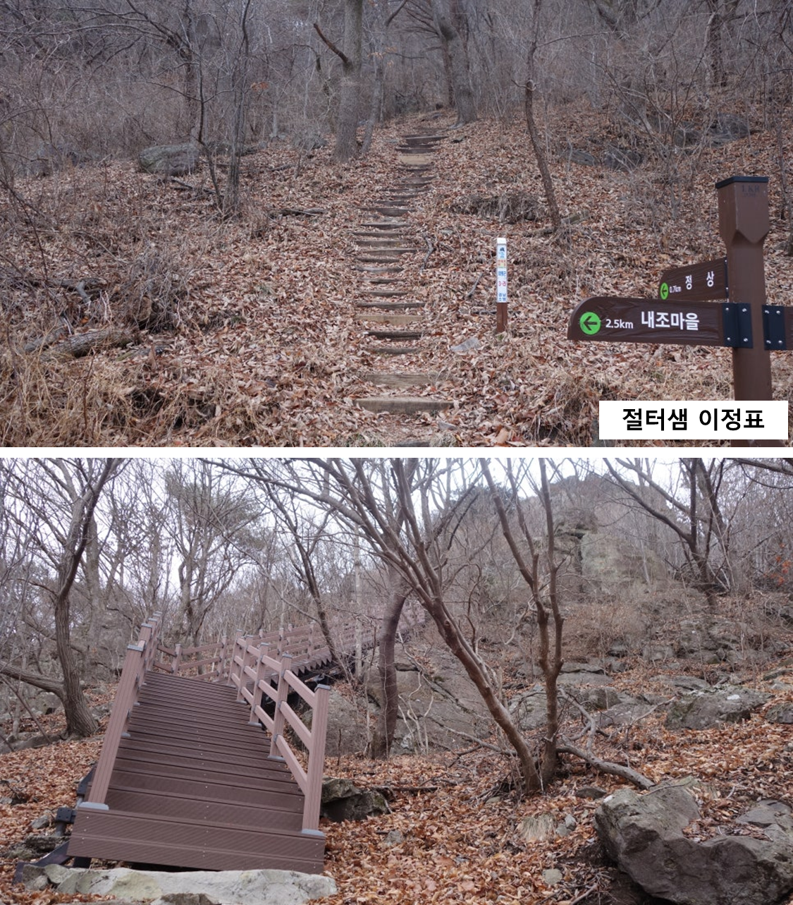 * 코스: A; 내조마을주차장~1쉼터~2쉼터~절터샘~바람덤~능선삼거리~