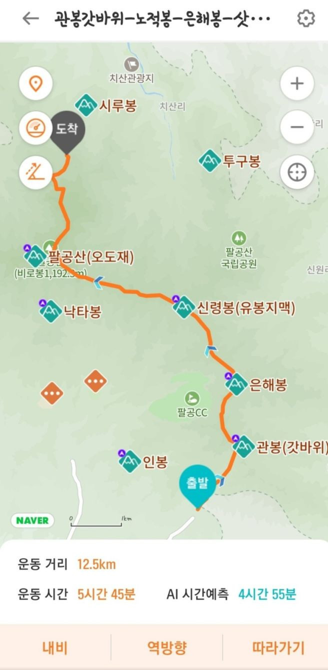 | 산행 시간 | 선택A: 12.5km(6시간) 선택B: 7km(4시간) |