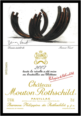 2010년 1월에 공개한 '2007년 빈티지 와인 레이블'. 디자인은 프랑스의 미술가인 베르나르 브네다(Bernar Venet)가 습니다.그는 현재 프랑스에서 주목 받고 있는데 라벨에 자신의 대표작 '철로 그린 거대한 곡선'의 드로잉을 넣었습니다.개념주의 미술가인 그는 철 조각의 마술사로 불리고 있습니다.